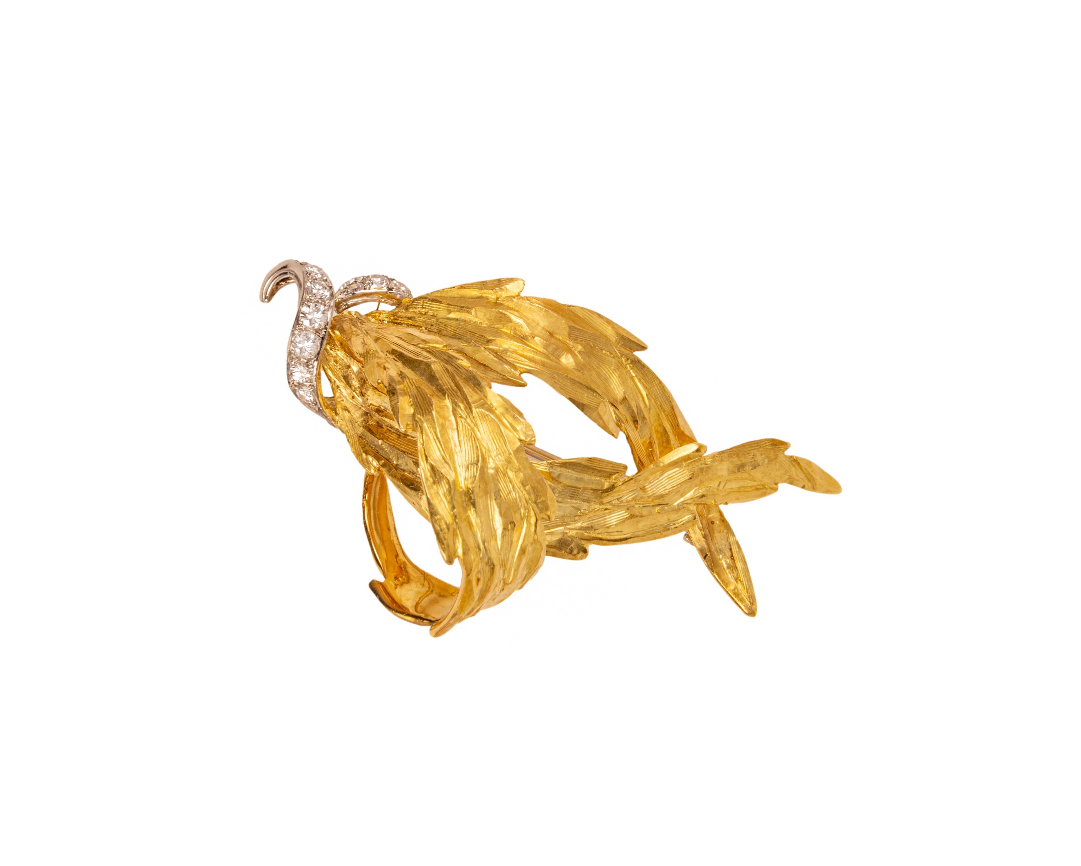 Broszka z żółtego złota 18 karatowego, z diamentami
