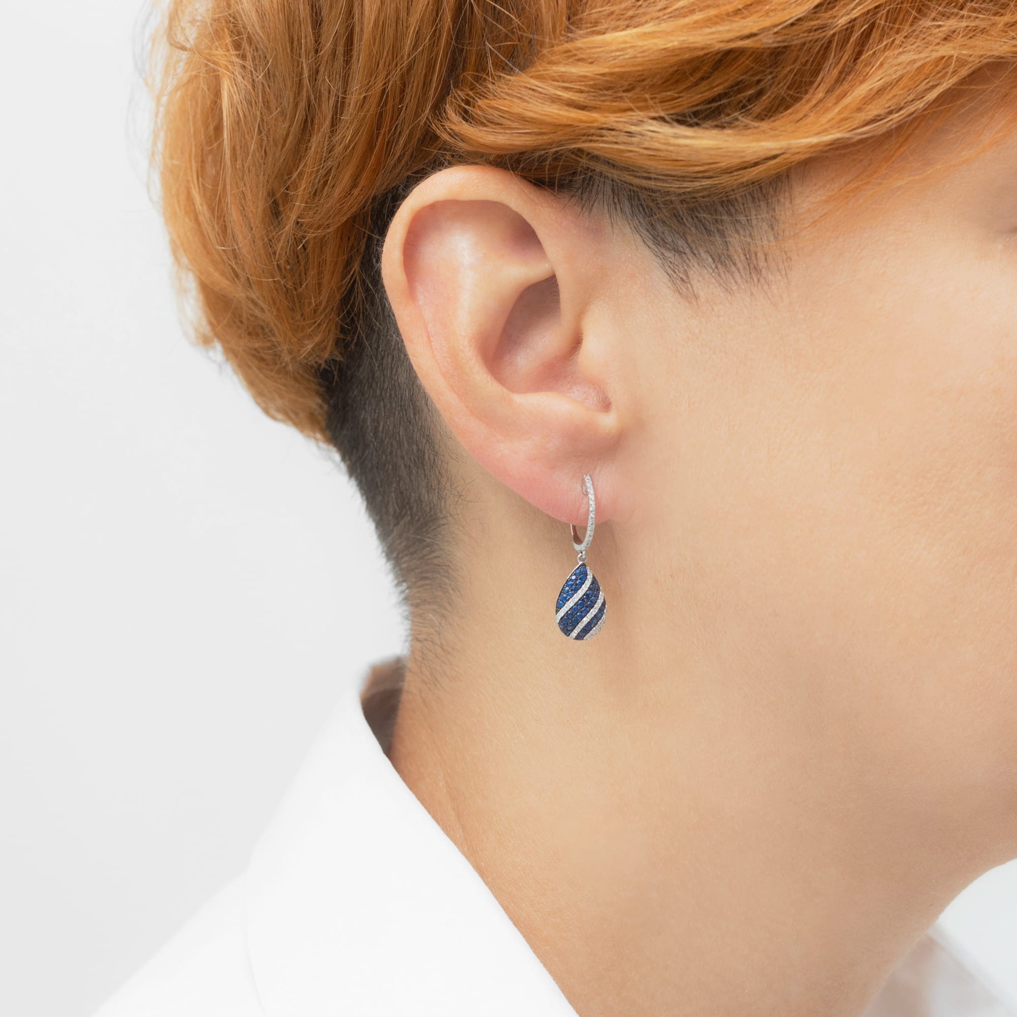 Kolczyki łezki z białego złota z diamentami i szafirami