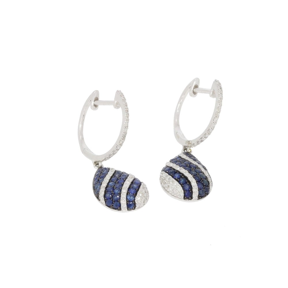 Eleganckie kolczyki wykonane z białego złota, z szafirami i diamentami. Biżuteria nada niepowtarzalnego charakteru każdej stylizacji.