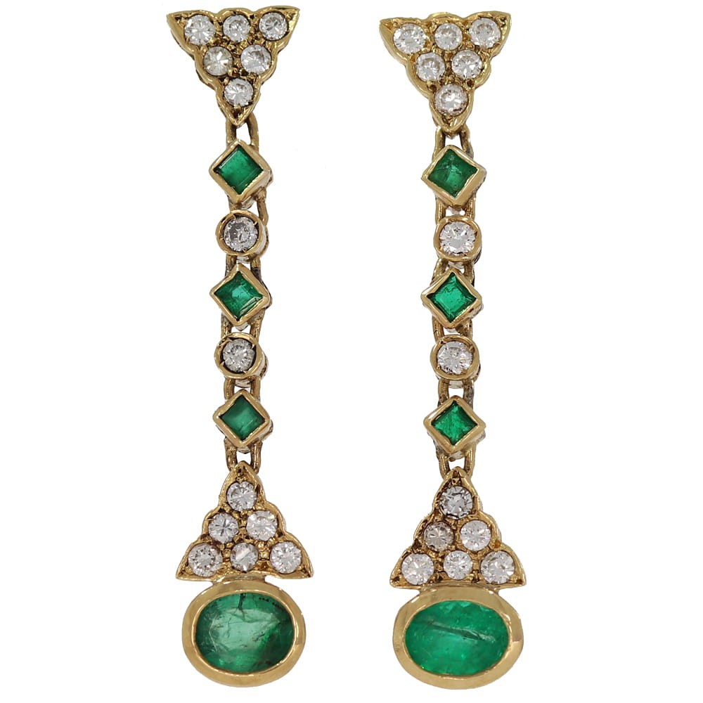 Kolczyki wiszące z żółtego złota ze szmaragdami i z diamentami