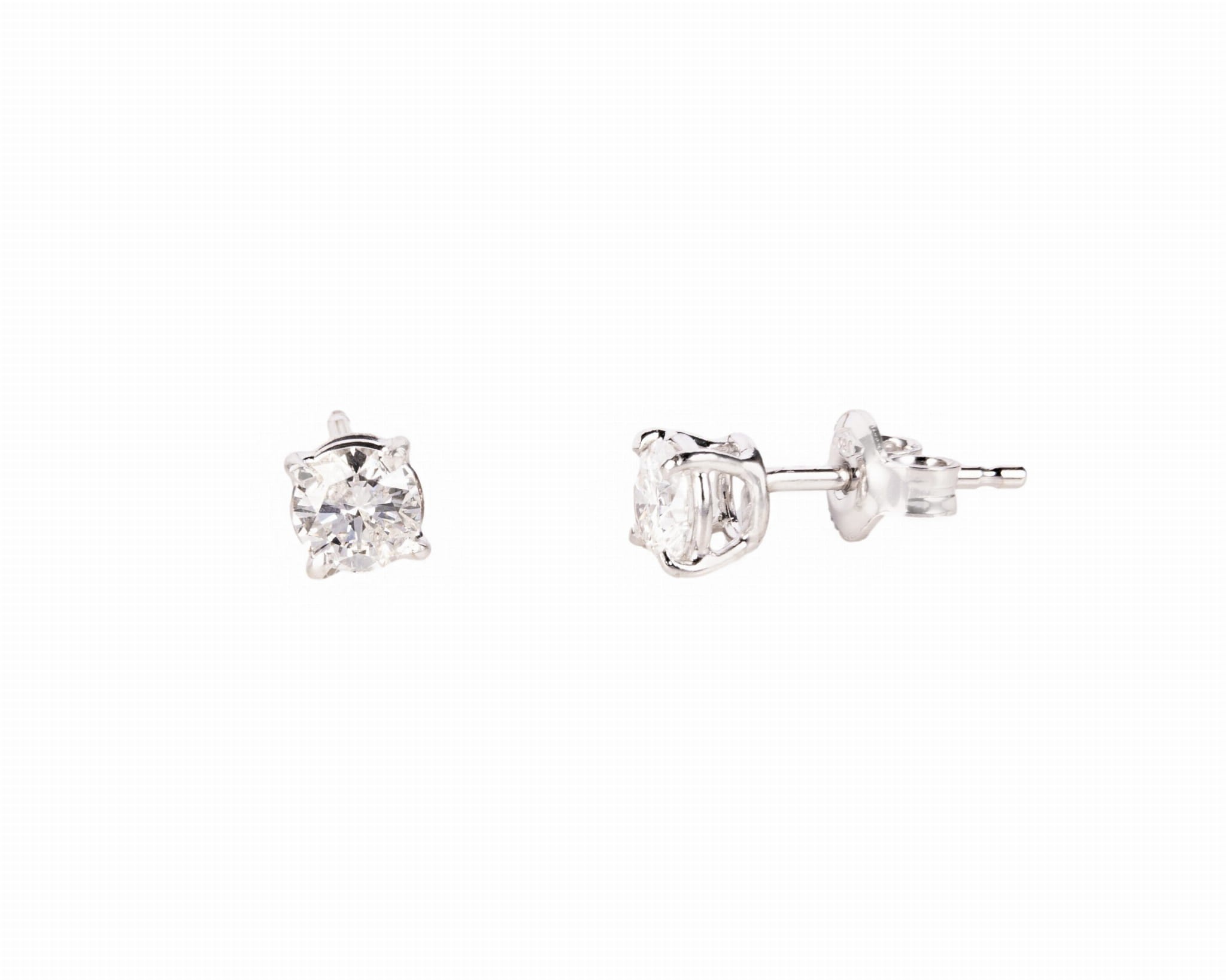Kolczyki sztyfty z diamentami o łącznej masie ok. 1 karat, czystości P1 i barwie H. Całość wykonana w białym złocie próba 750.
