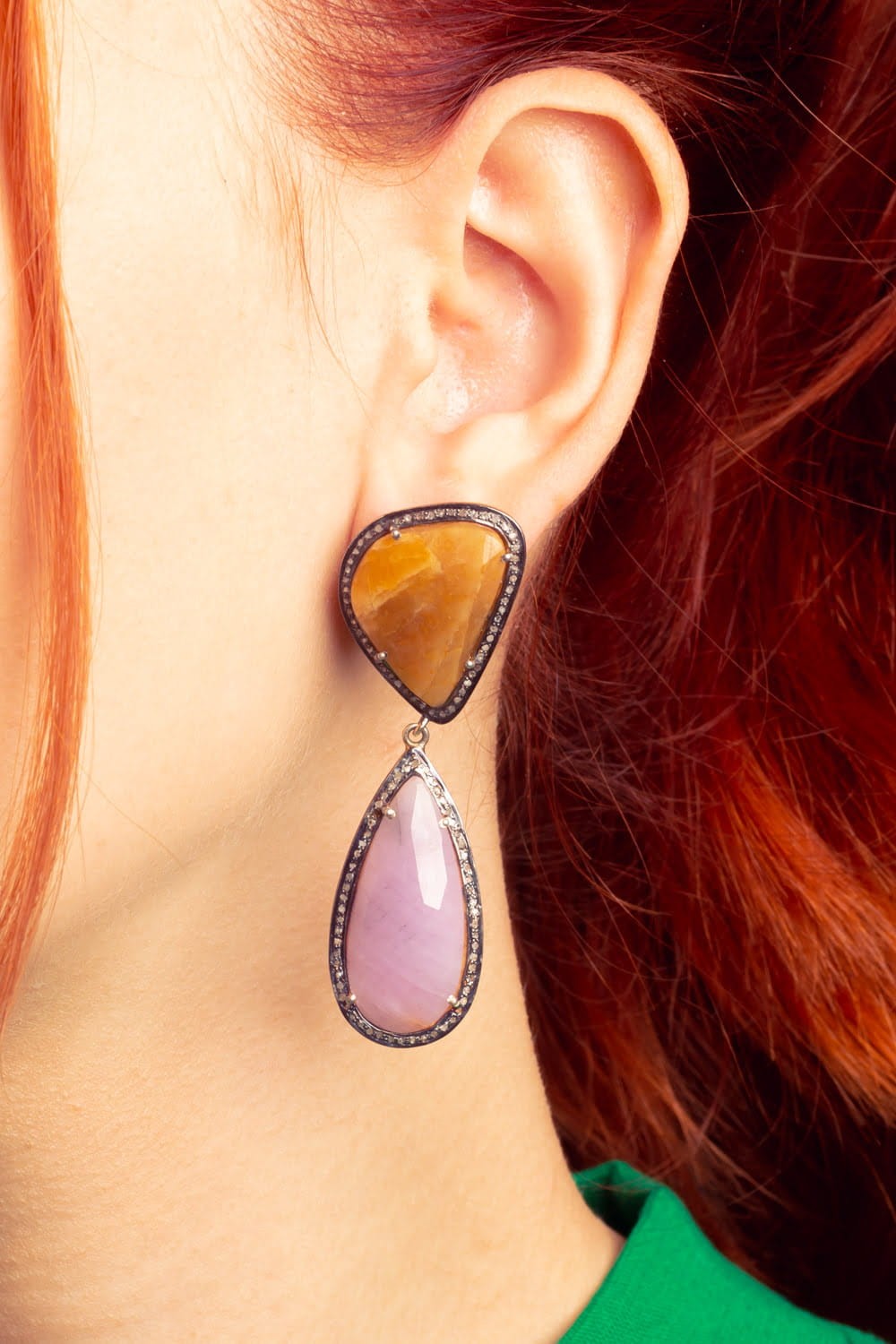 Kolczyki z kolorowymi kamieniami i rautami