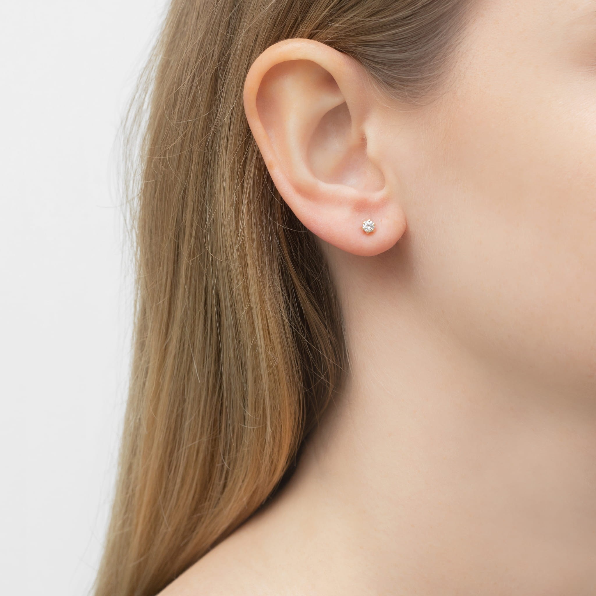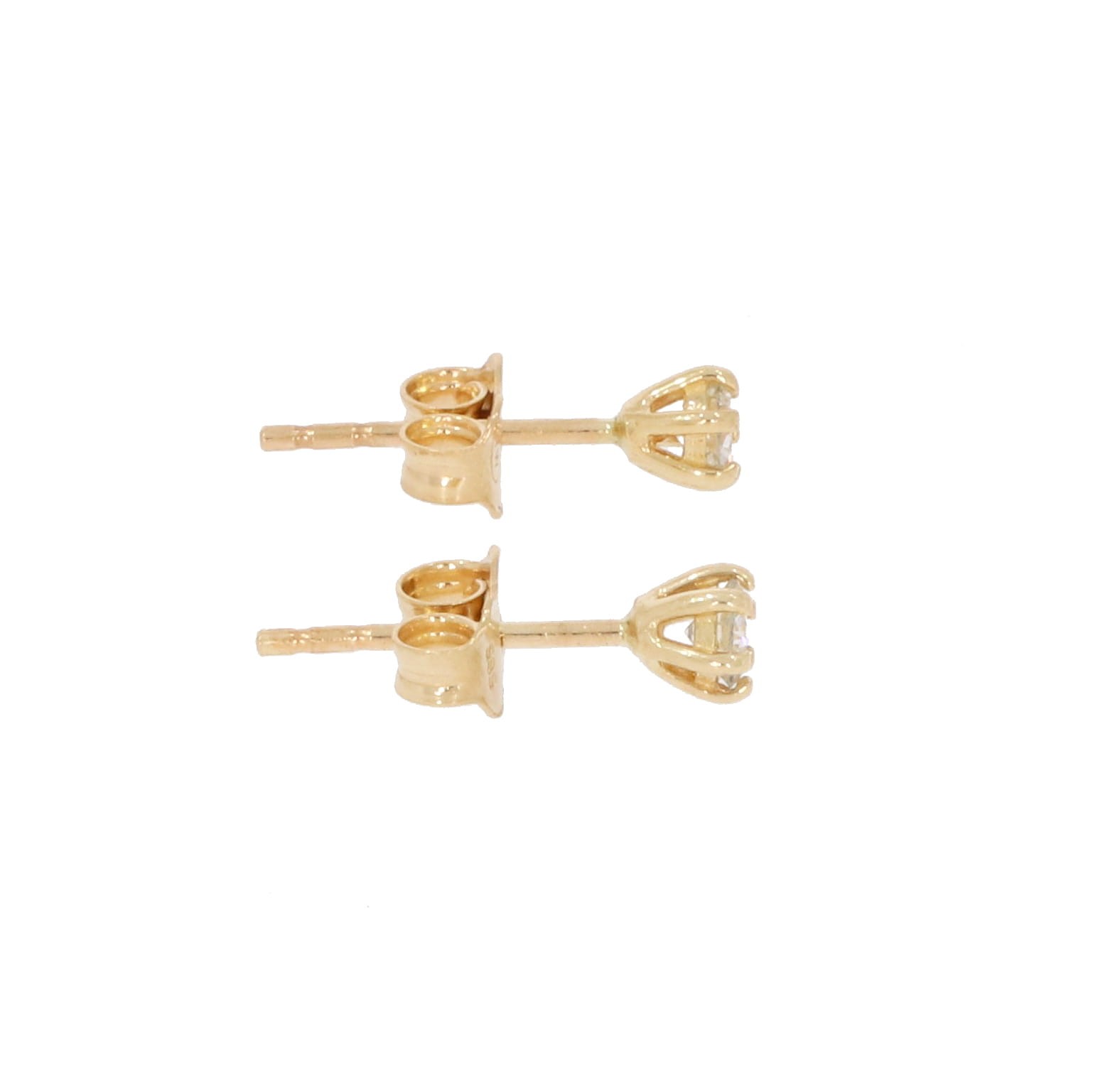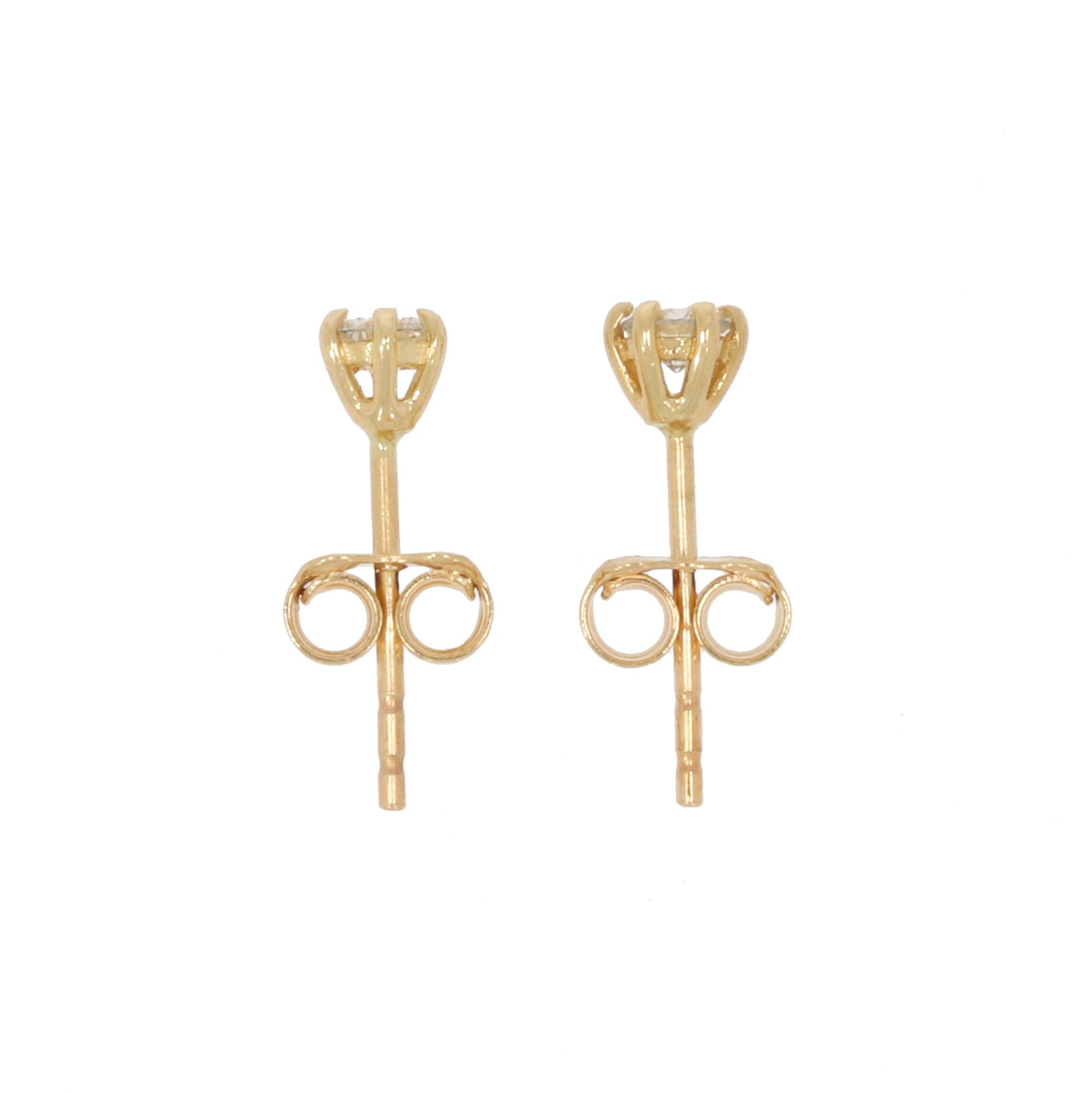 Delikatne, złote kolczyki na sztyftach z diamentami o łącznej masie 0,24 ct. Posiadają wygodne zapięcia typu baranek.