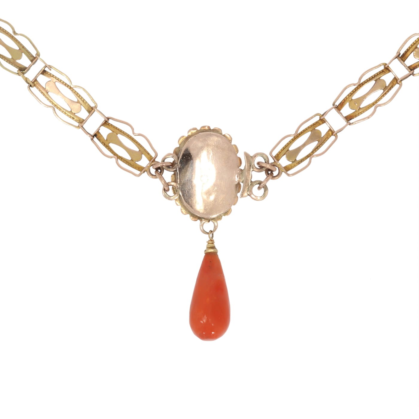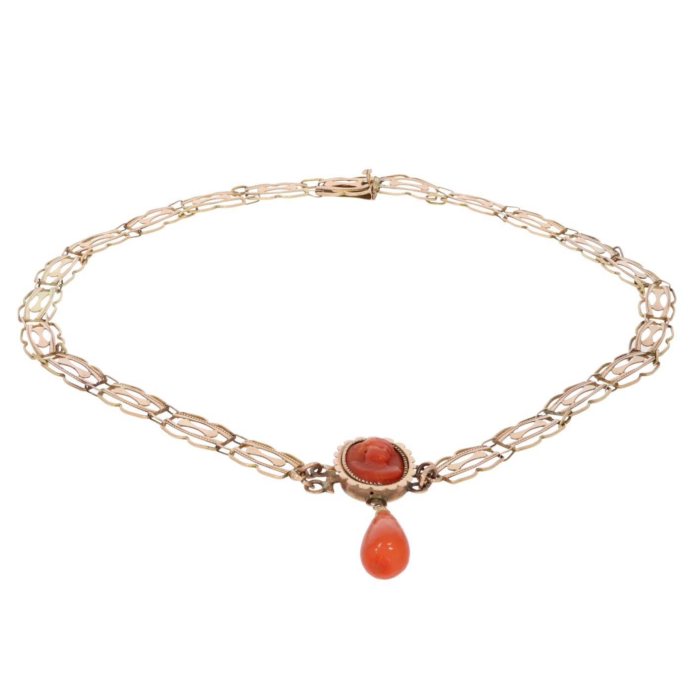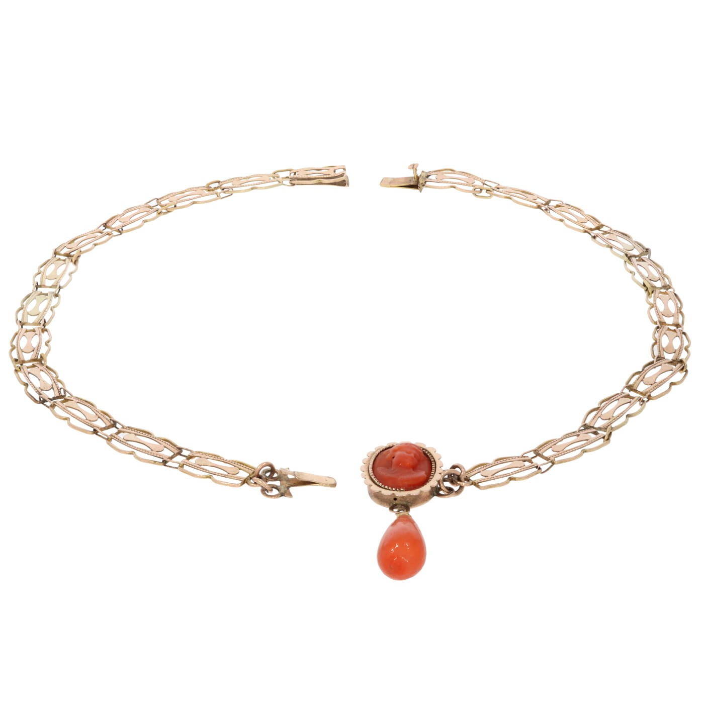 Naszyjnik dwuczęściowy z żółtego złota z rzeźbionym koralem