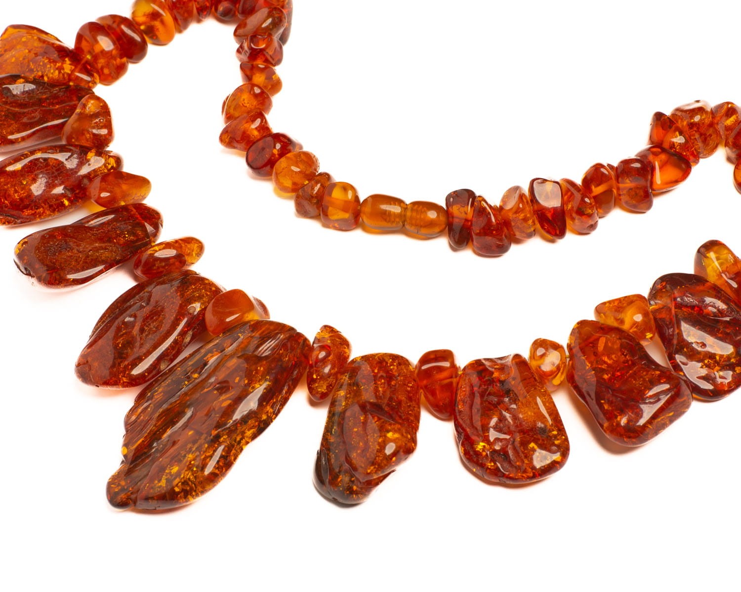 Naszyjnik w surowym klimacie, z pięknych, nieoszlifowanych bursztynów.