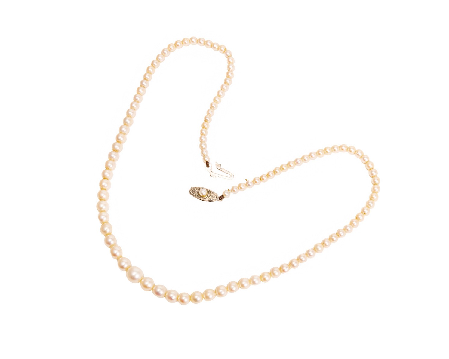 Naszyjnik z morskich pereł, ze srebrnym zapięciem