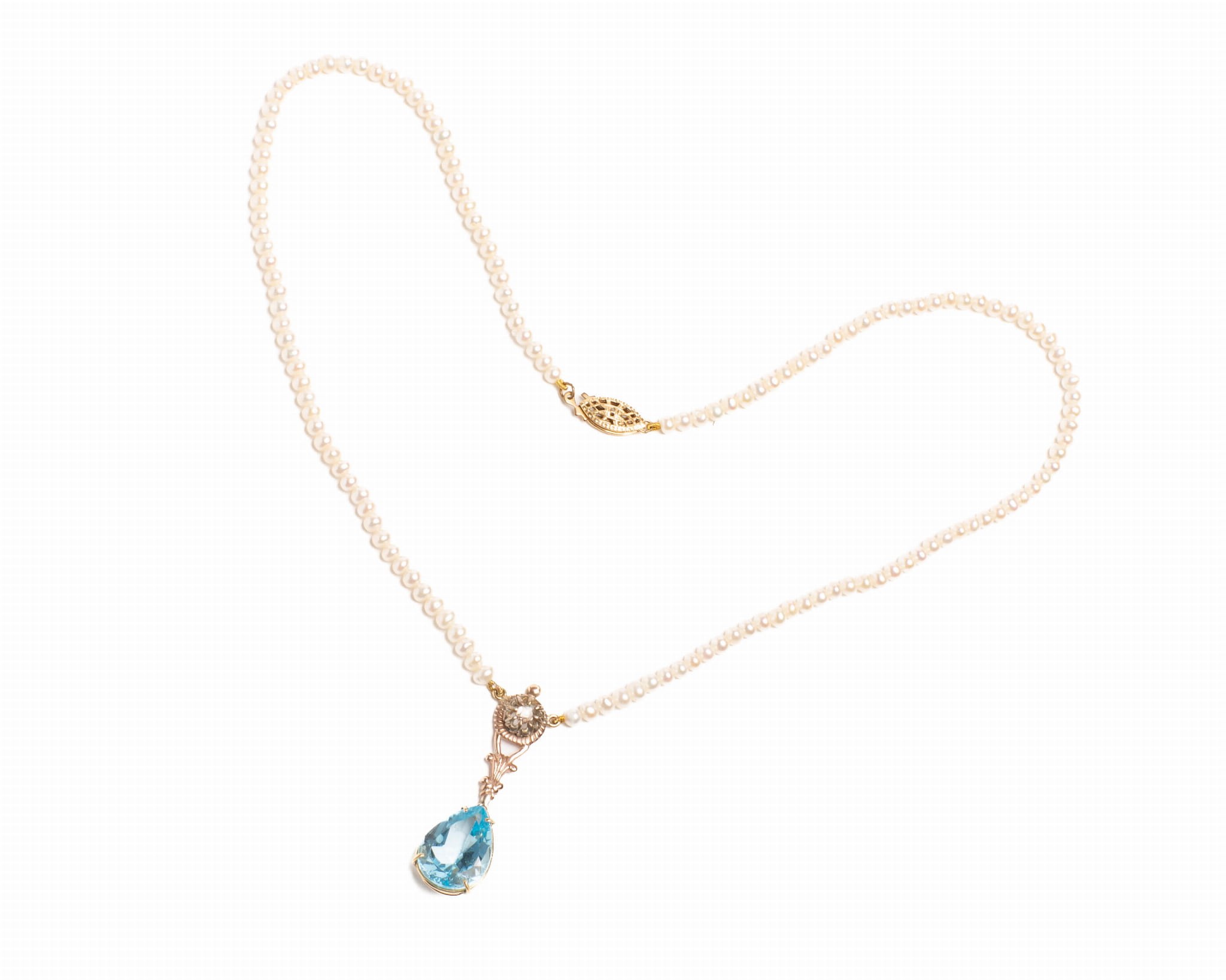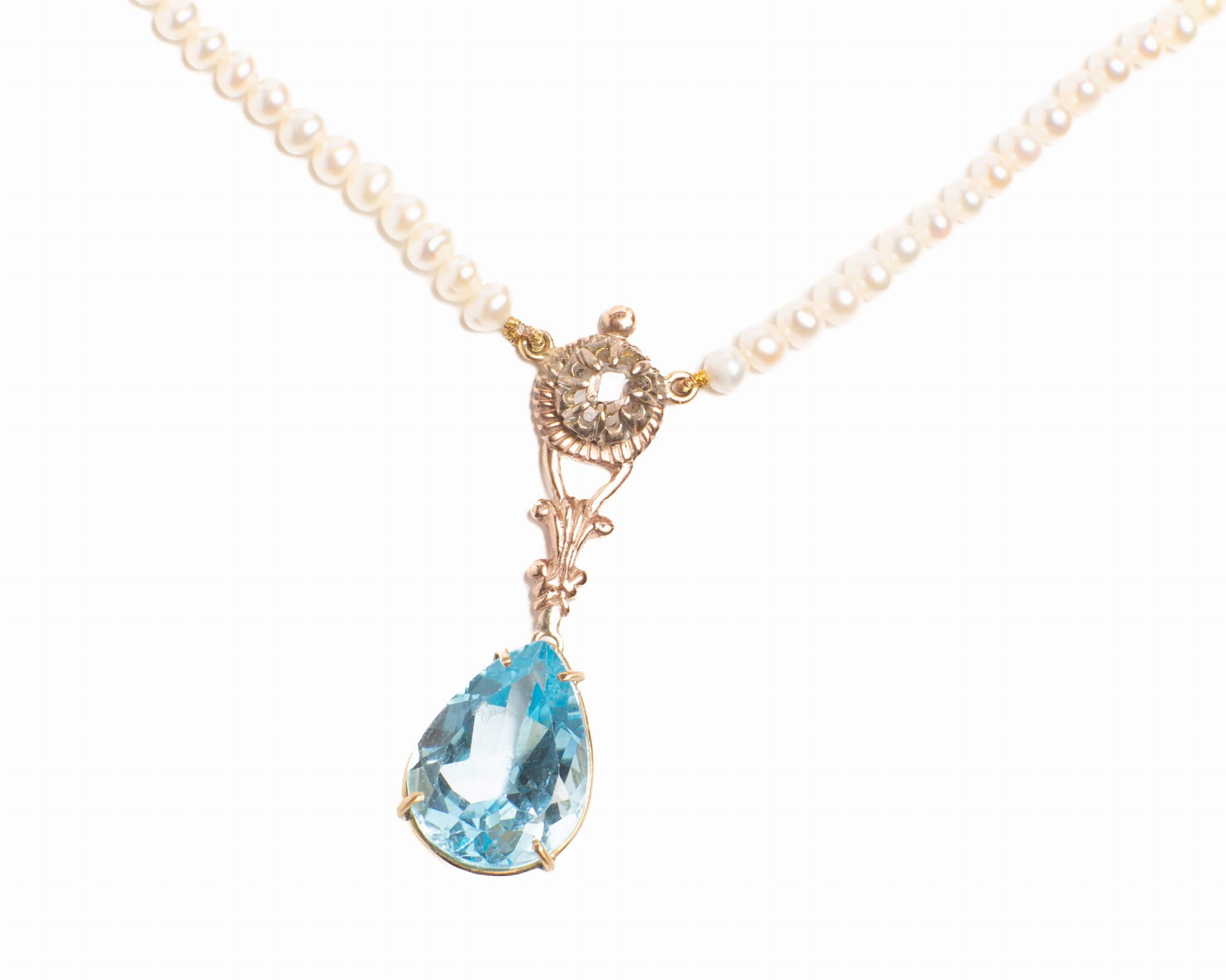Naszyjnik z perłami, diamentami i topazem