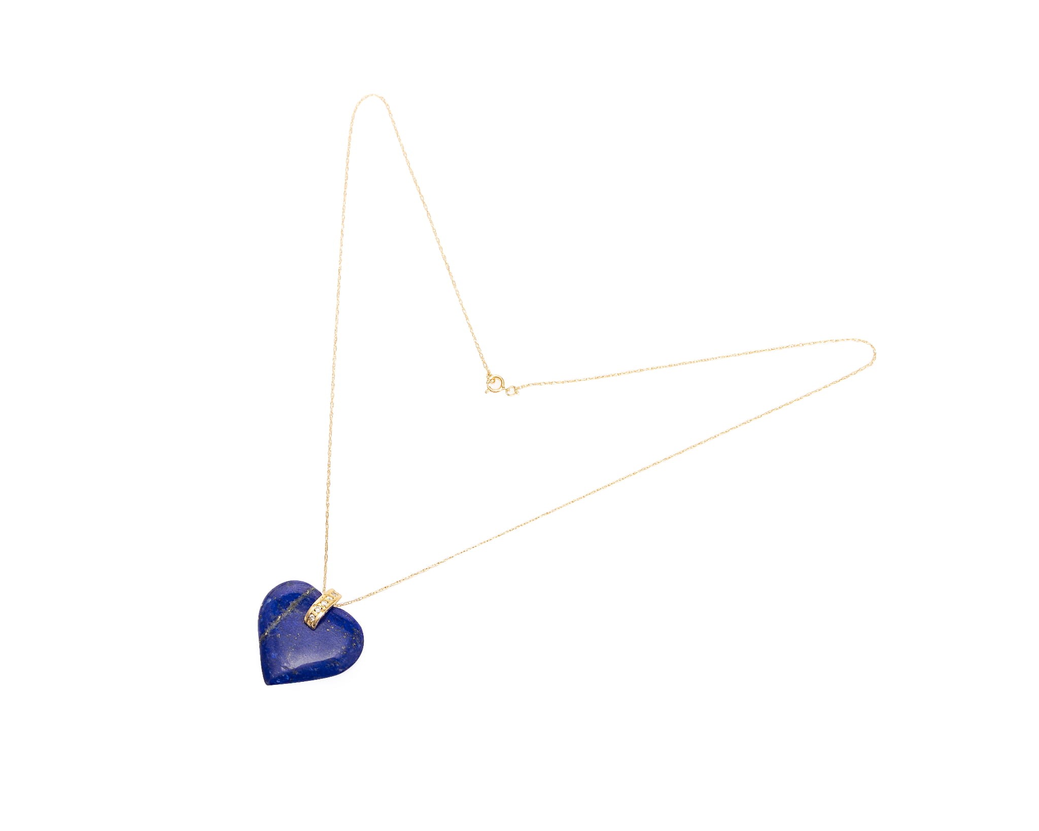 Naszyjnik, na który składa się delikatny złoty łańcuszek oraz zawieszka w kształcie serca z lapis lazuli oraz diamentami zakutymi w górnej części. Łączna masa diamentów to ok. 0,06 karata. Długość całości to ok. 51 cm, naszyjnik wykonano z żółtego złota 14 karatowego.