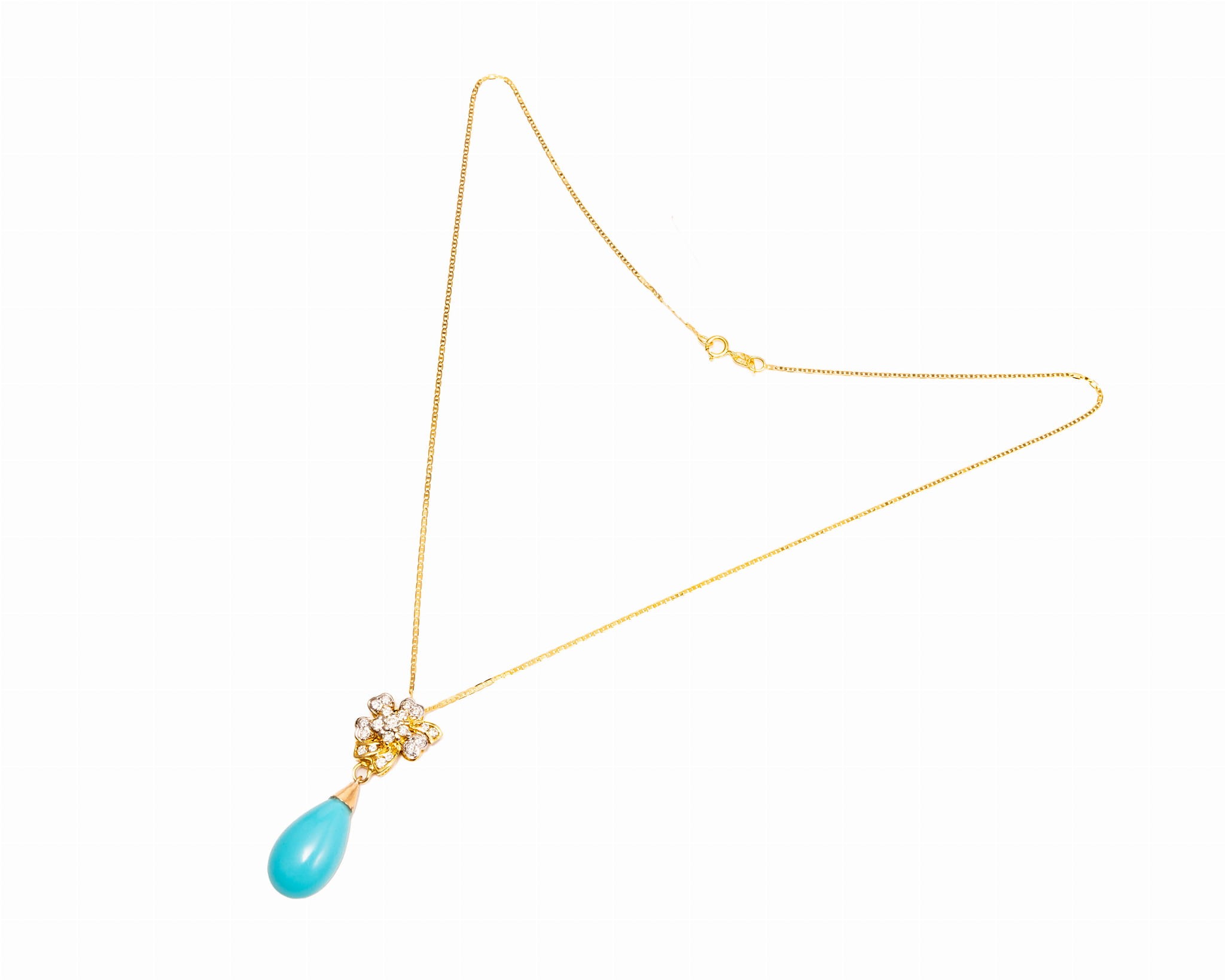 Naszyjnik z turkusem i diamentami ok. 0,8 karata w złocie pr. 585