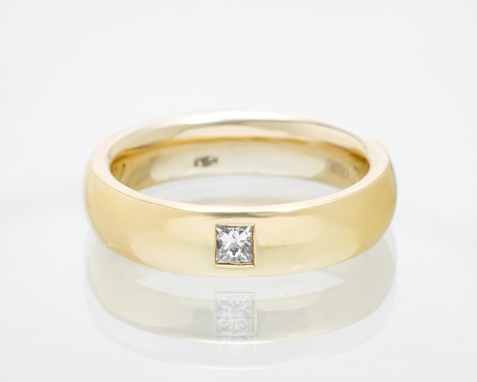 Obrączka z diamentem wykonana z żółtego złota w próbie 2.