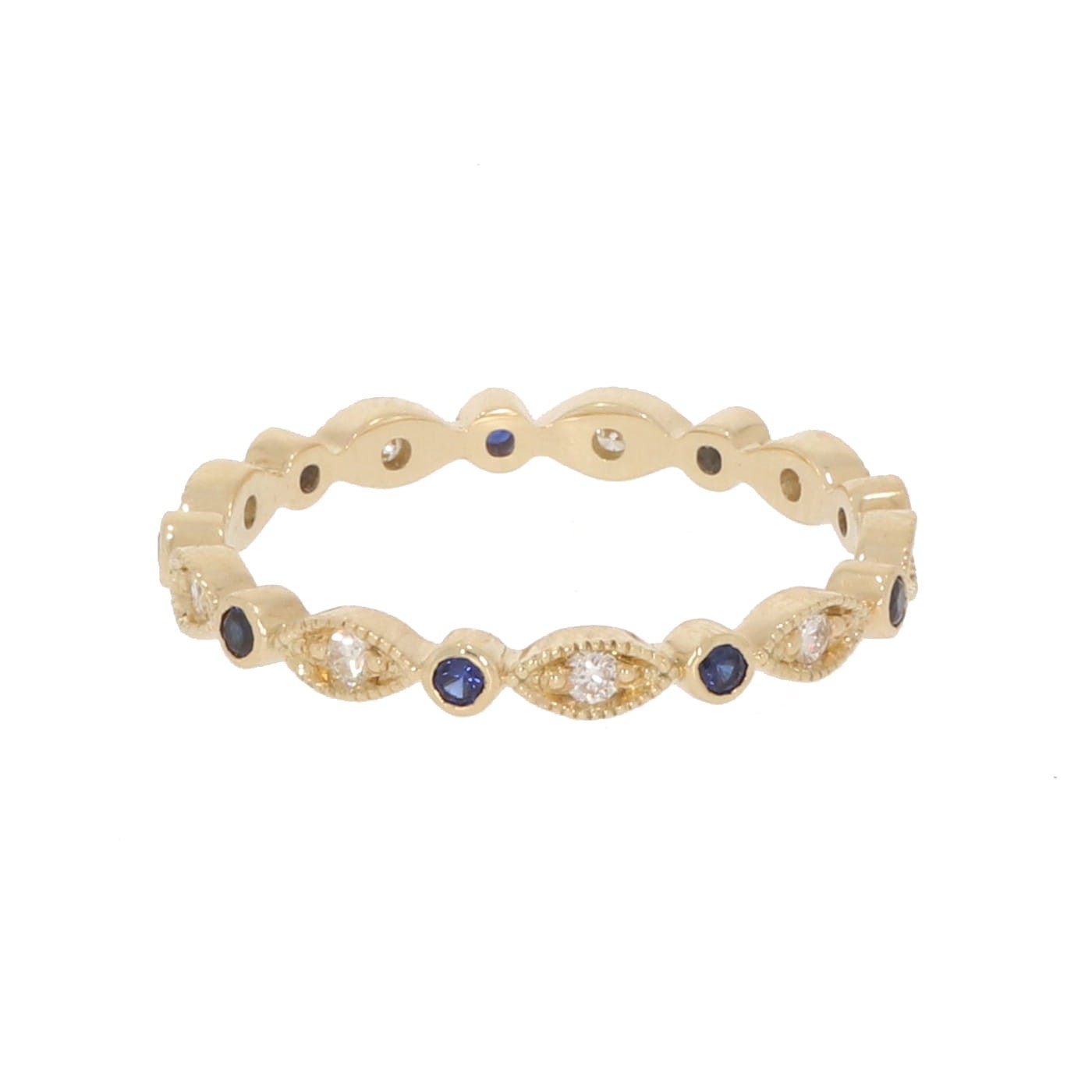 - Kamienie: brylanty o łącznej masie 0,14 ct Si/F-G; szafiry o łącznej masie 0,19 ct