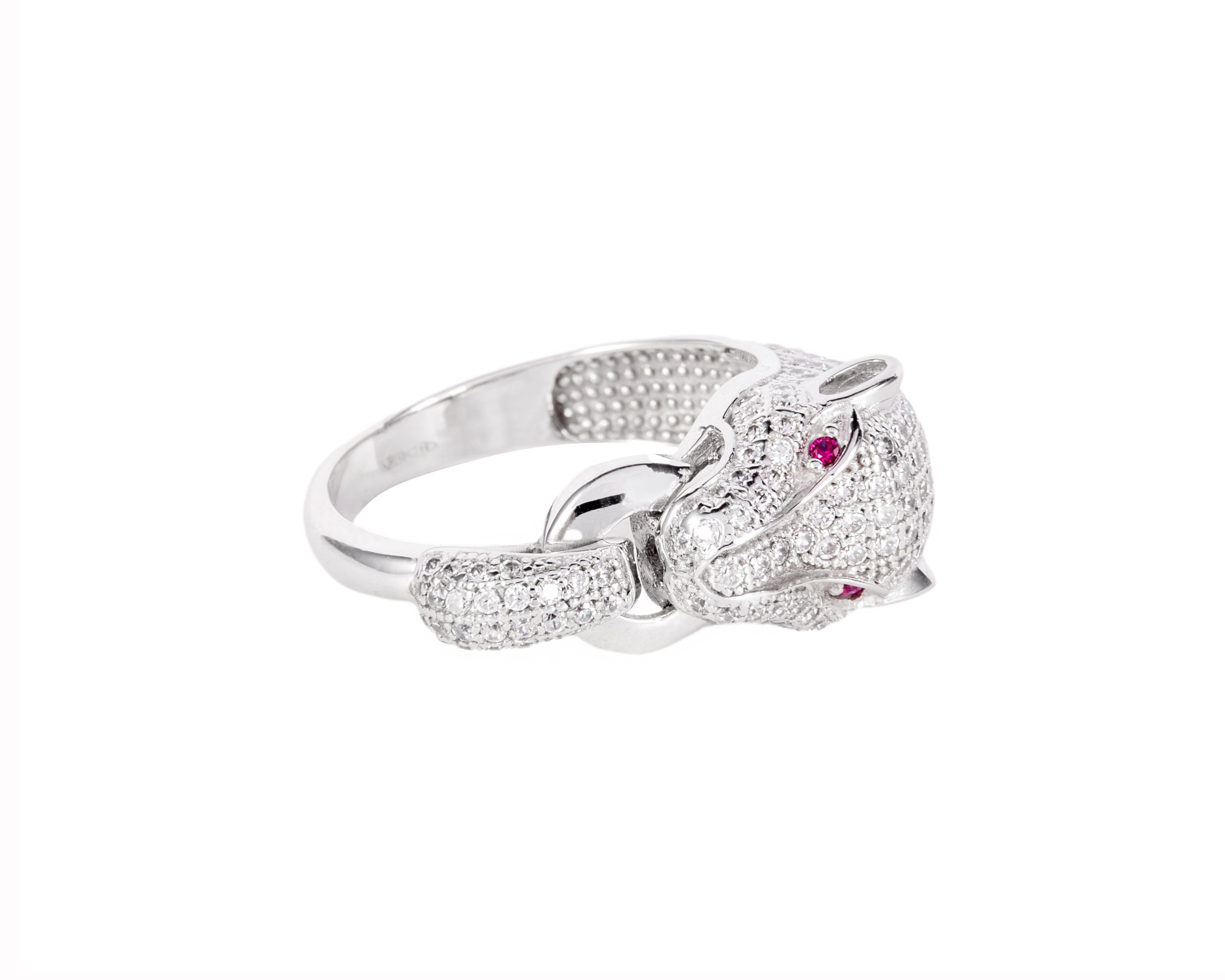 Pierścionek w białym złocie z motywem głowy pantery