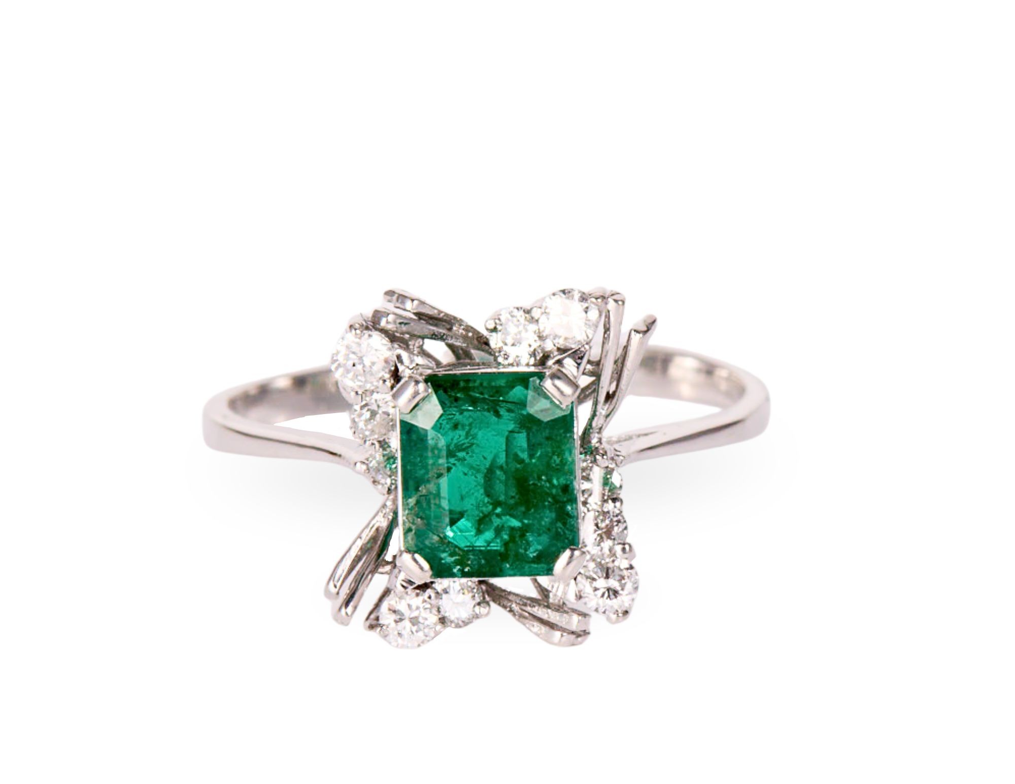 Pierścionek ze szmaragdem i diamentami – zielony ogień w białym złocie