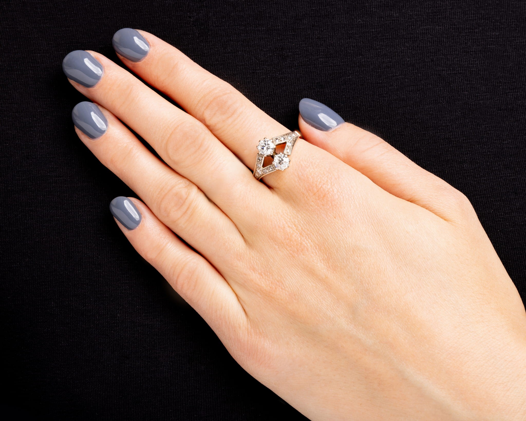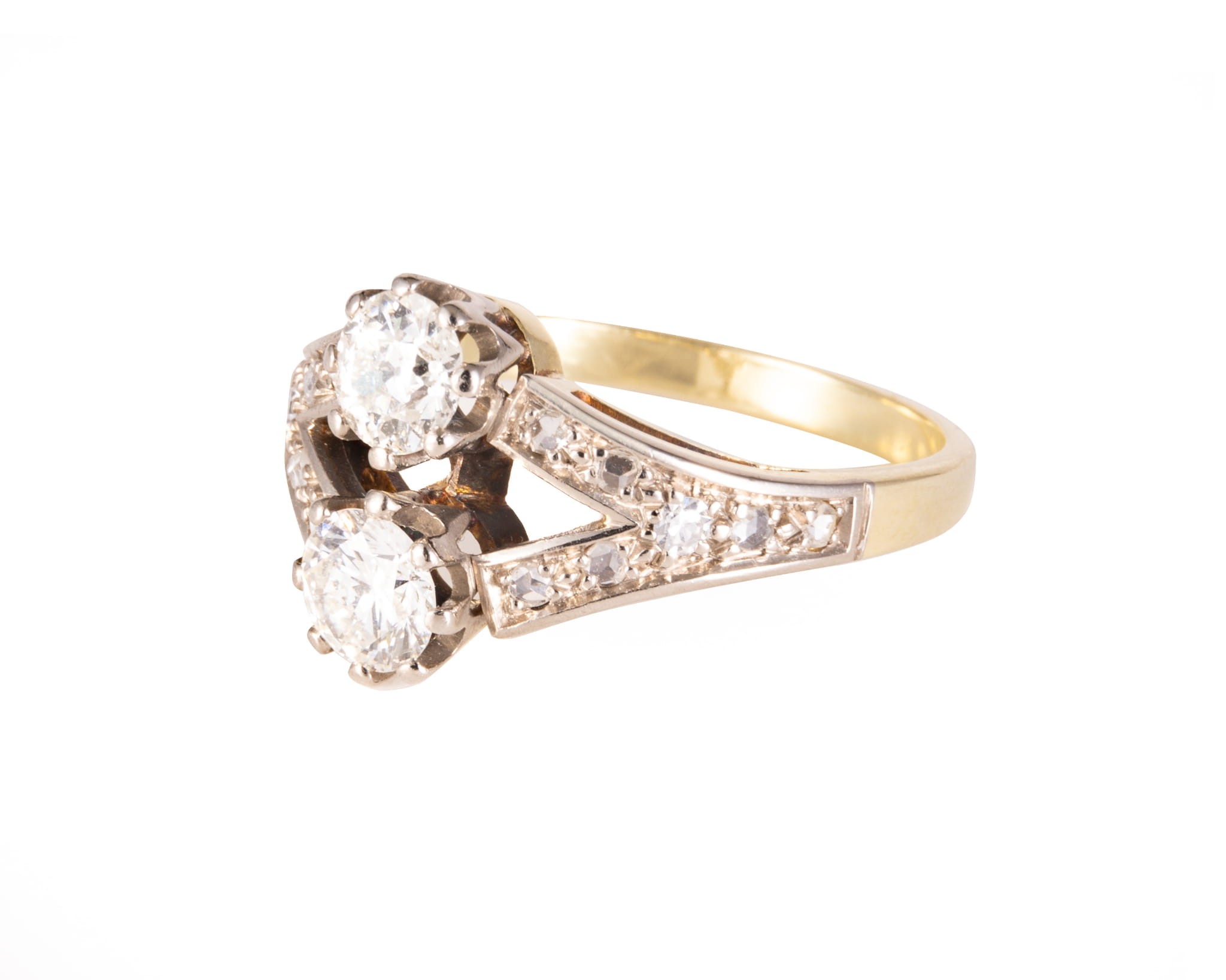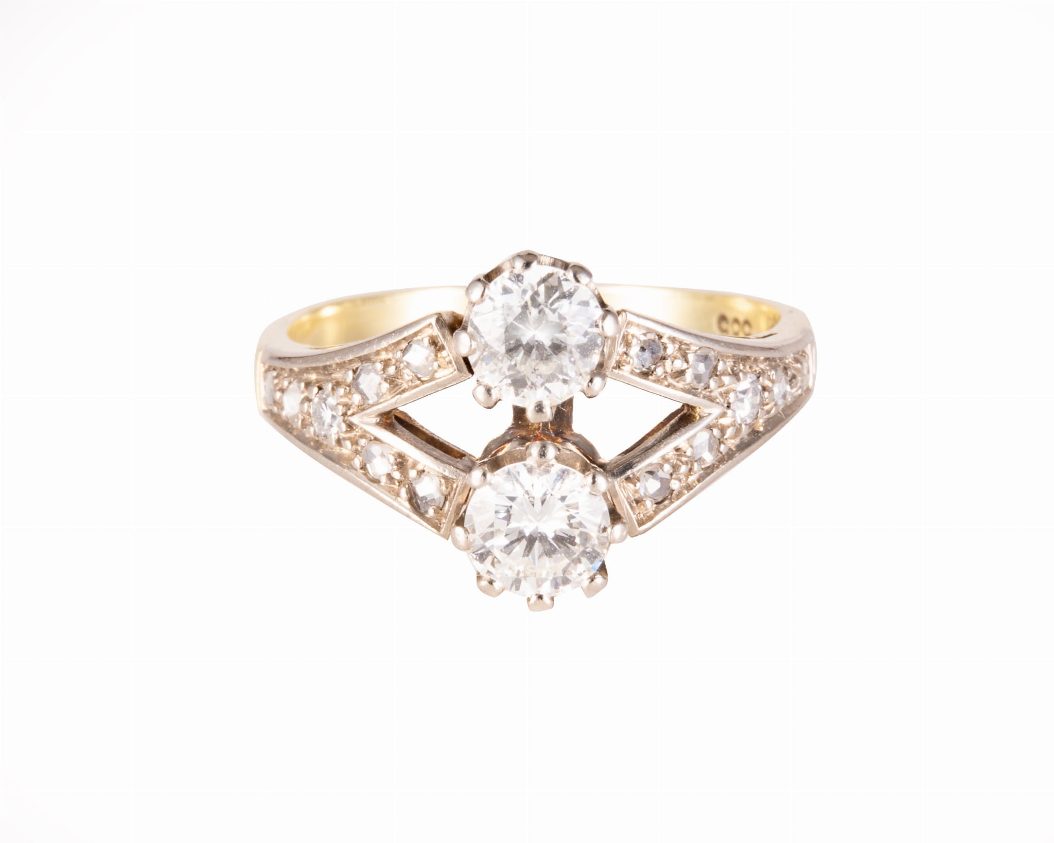Pierścionek wysadzany diamentami z 2 głównymi brylantami