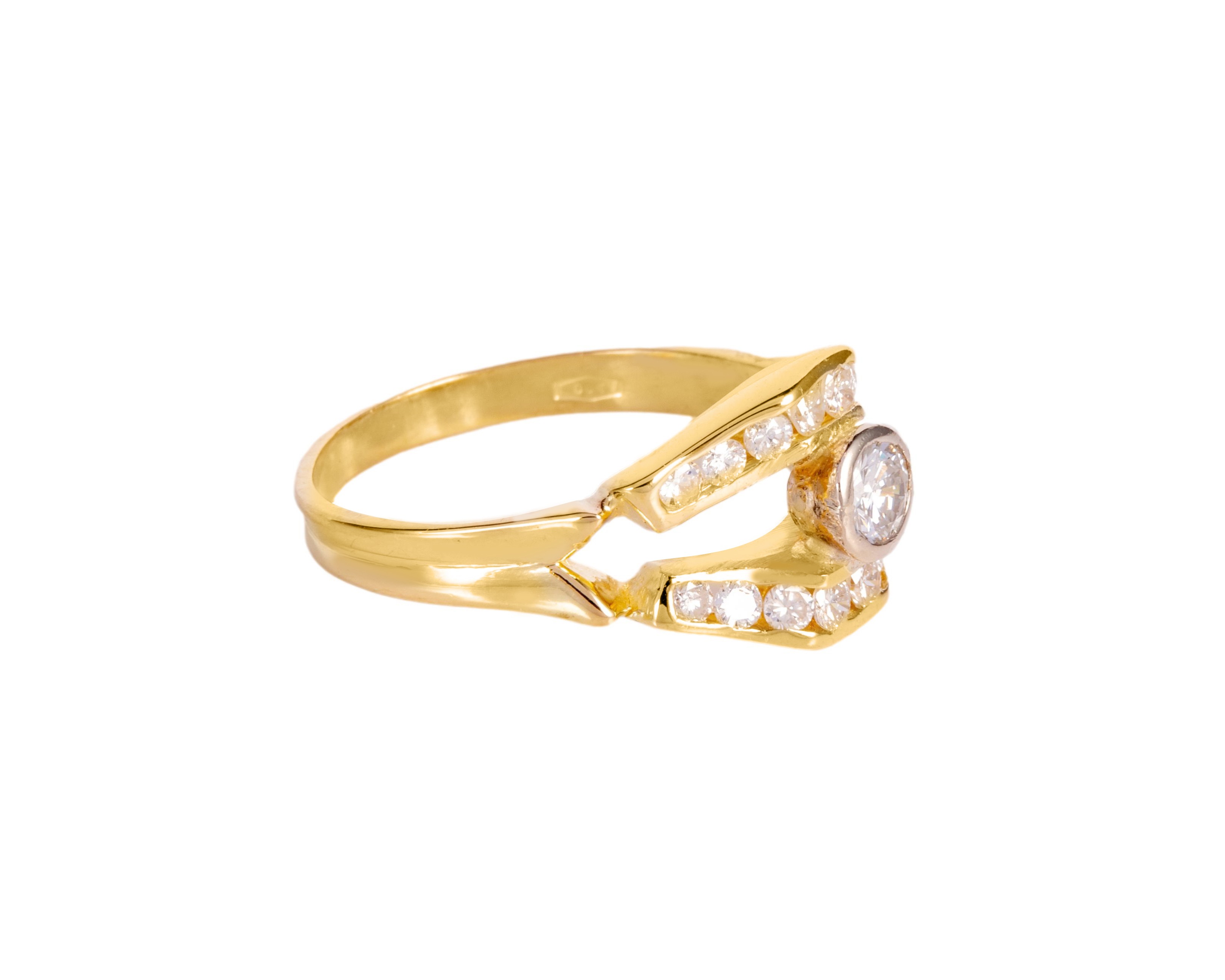 Pierścionek z 17 diamentami, żółte złoto pr. 750