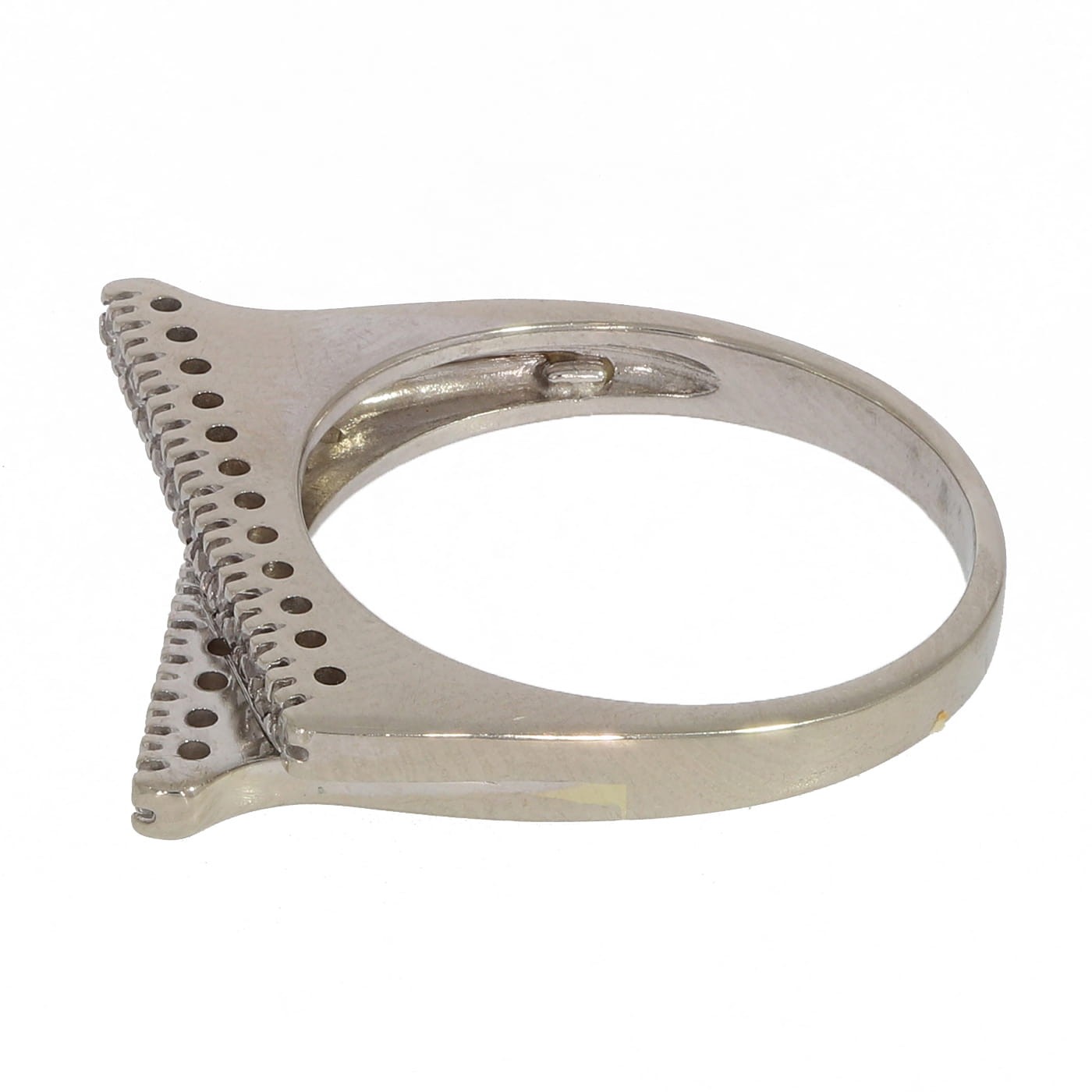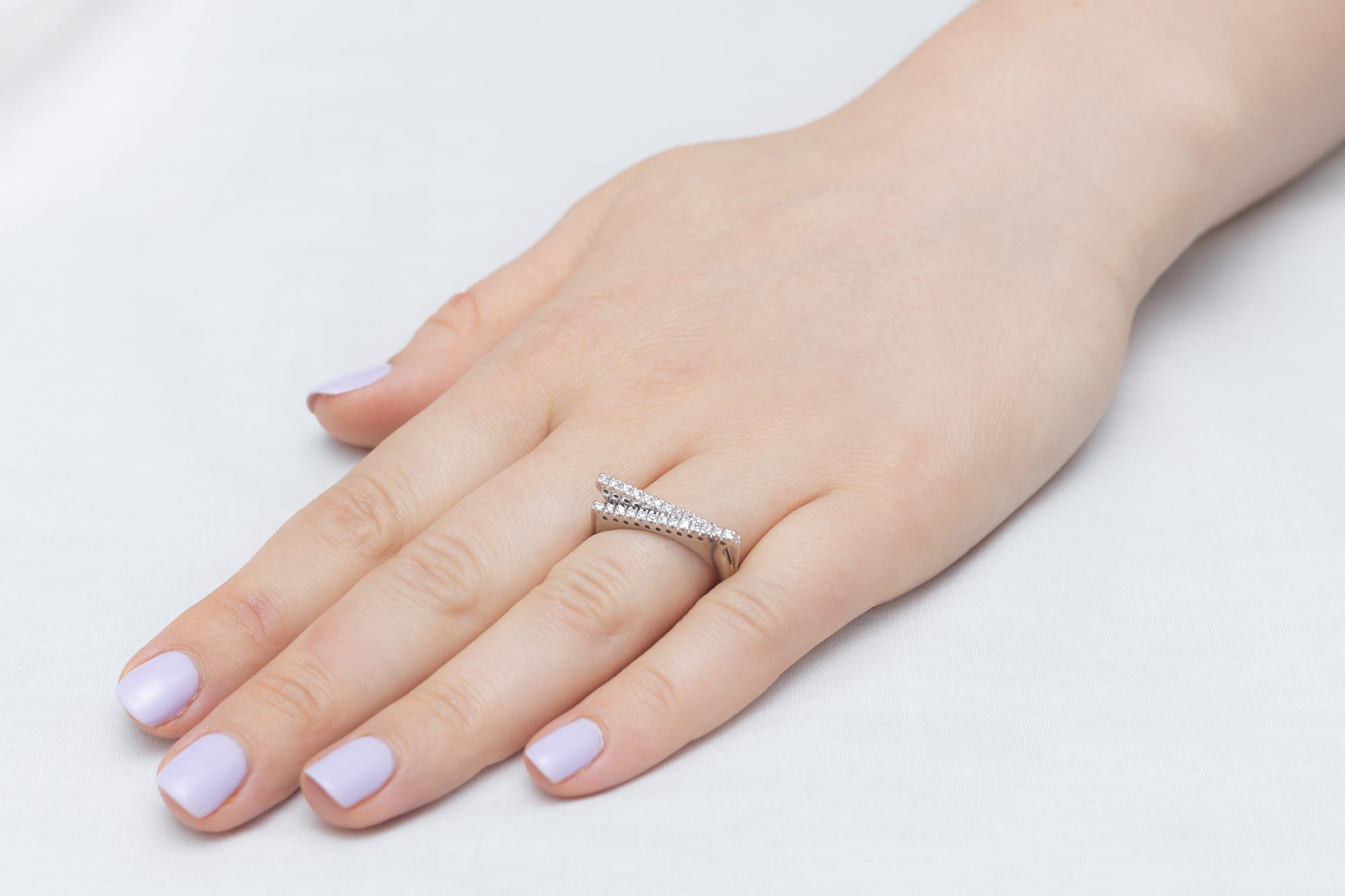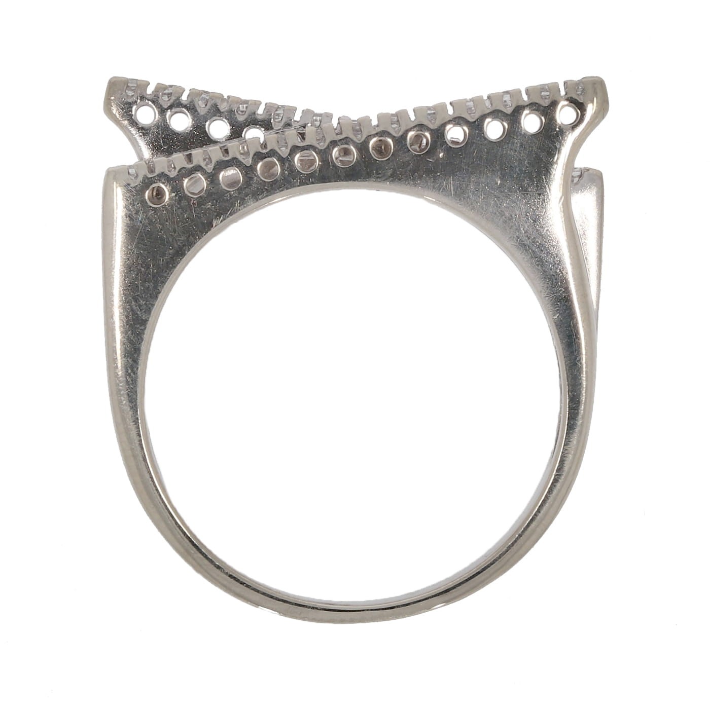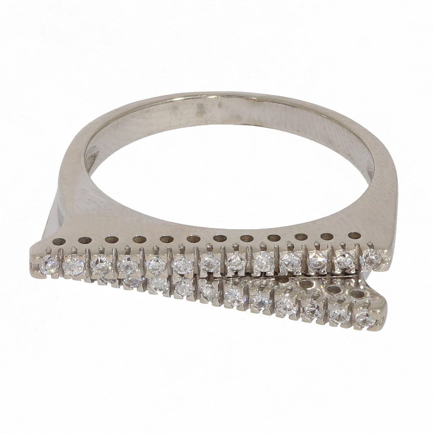 Pierścionek z białego złota o wyjątkowym kształcie. Ozdobiony cyrkoniami. Biżuteria wykonana w naszej pracowni przez najlepszych złotników.