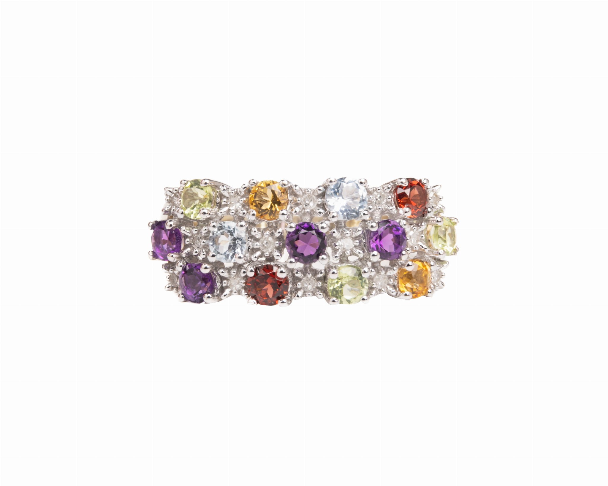 Pierścionek z kolorowymi kamieniami szlachetnymi i diamentami