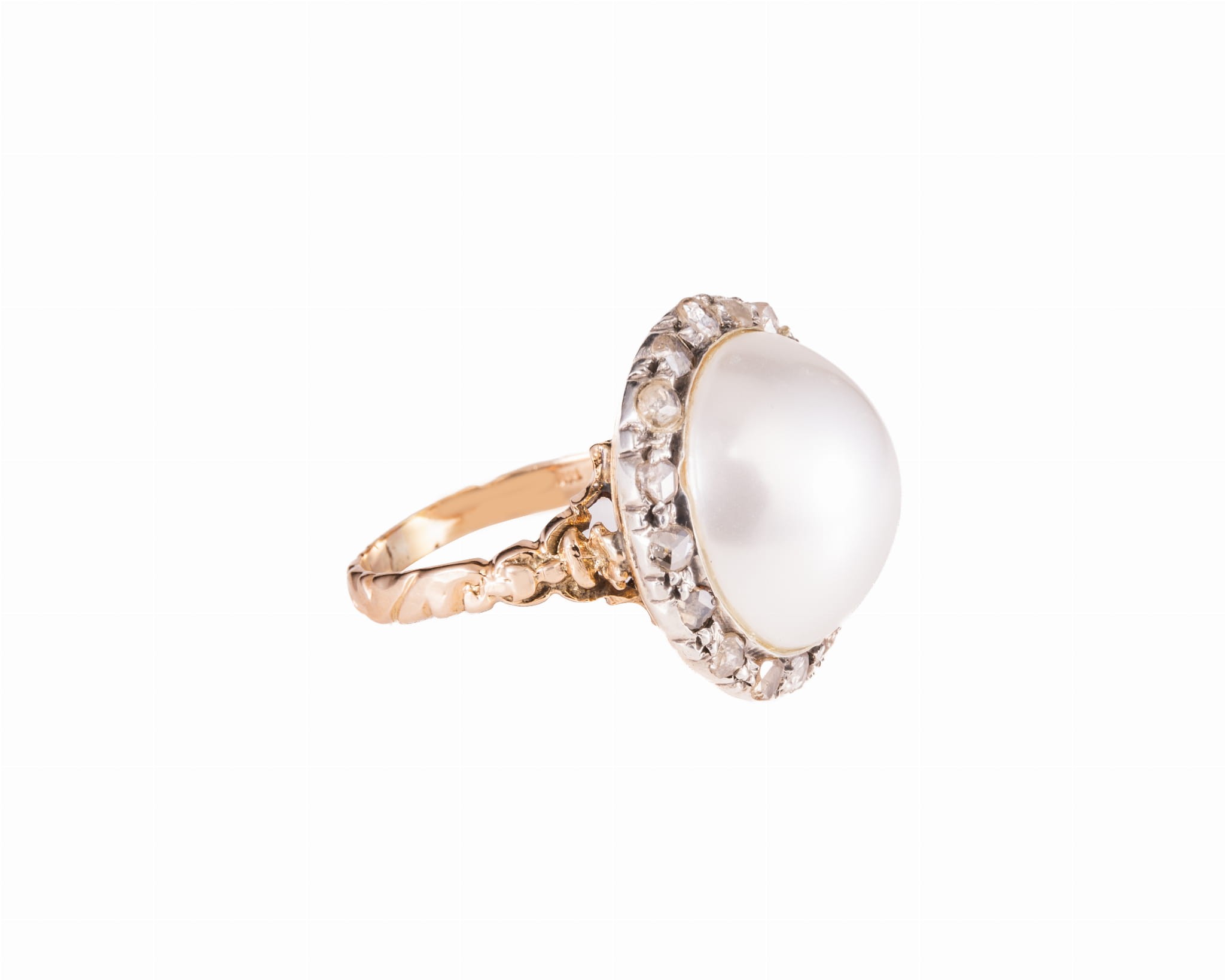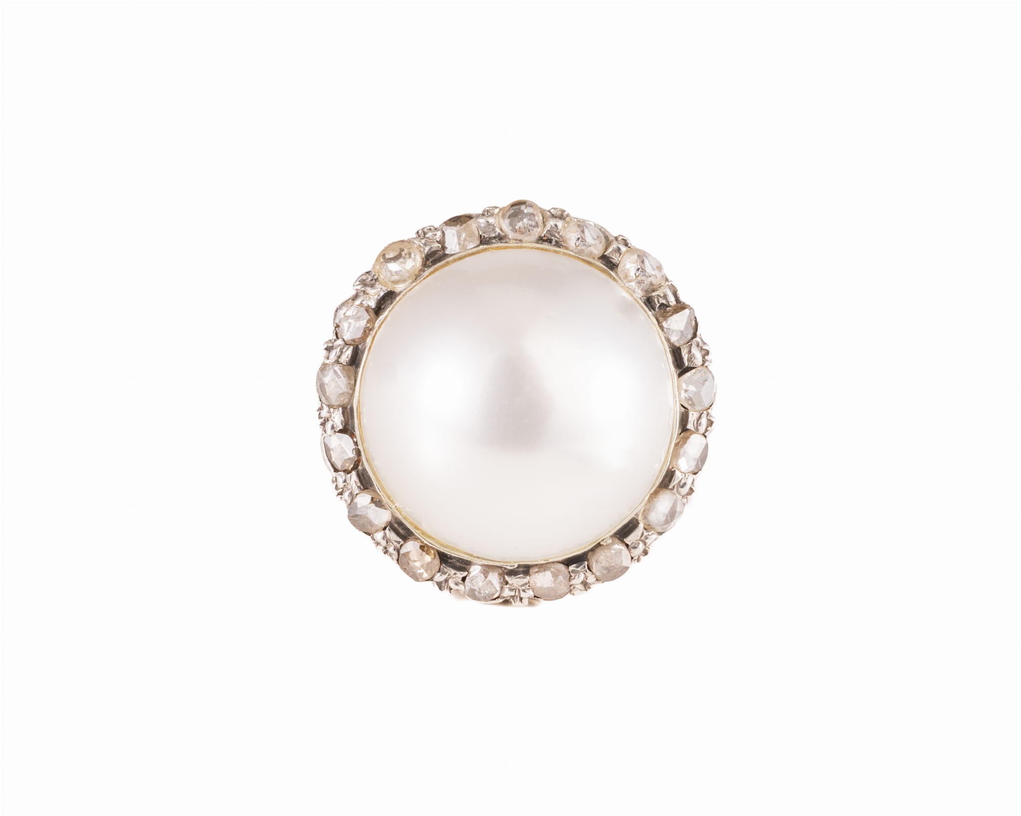 Pierścionek z perłą Mabe i rozetami diamentowymi