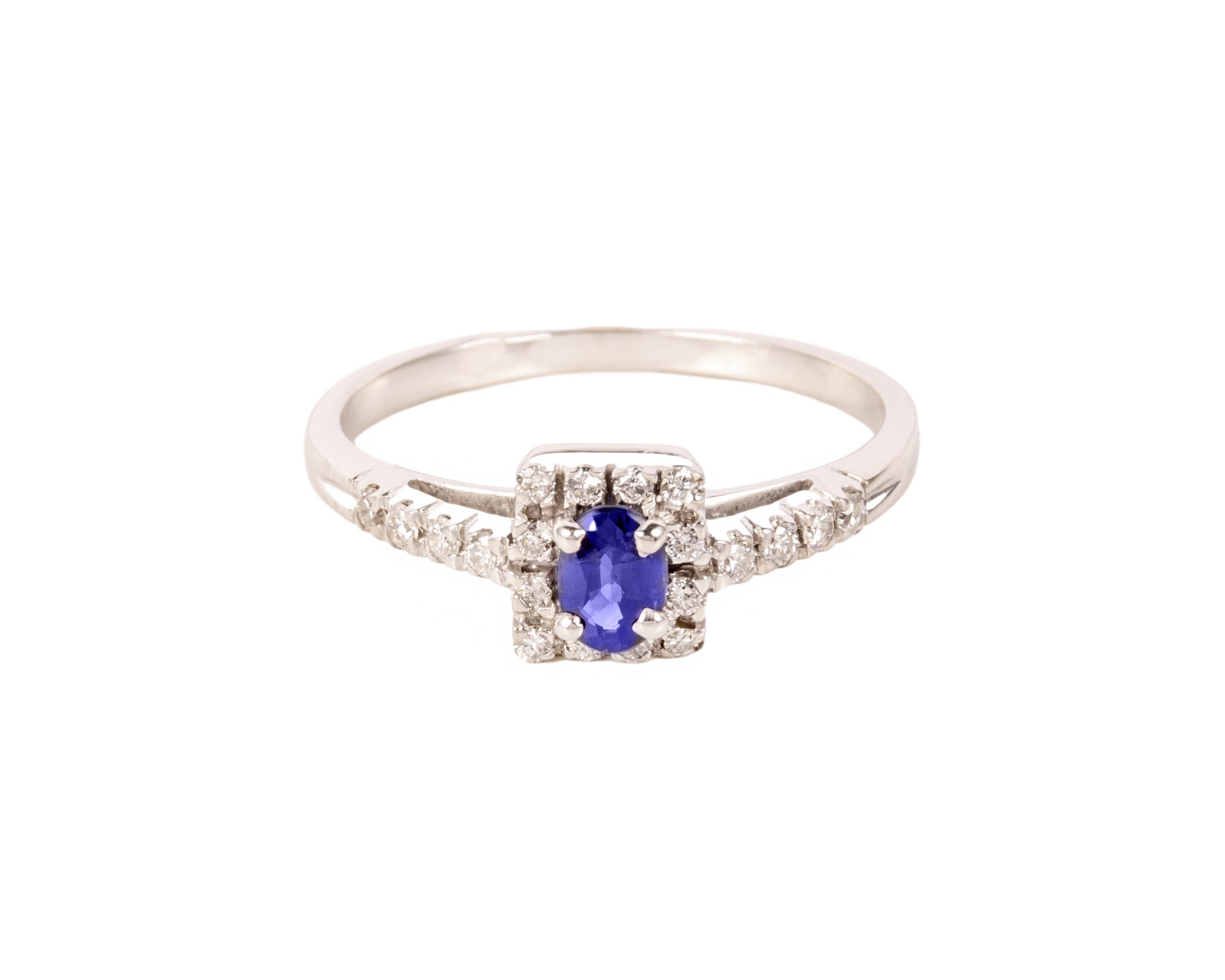 Pierścionek z szafirem i diamentami w białym złocie