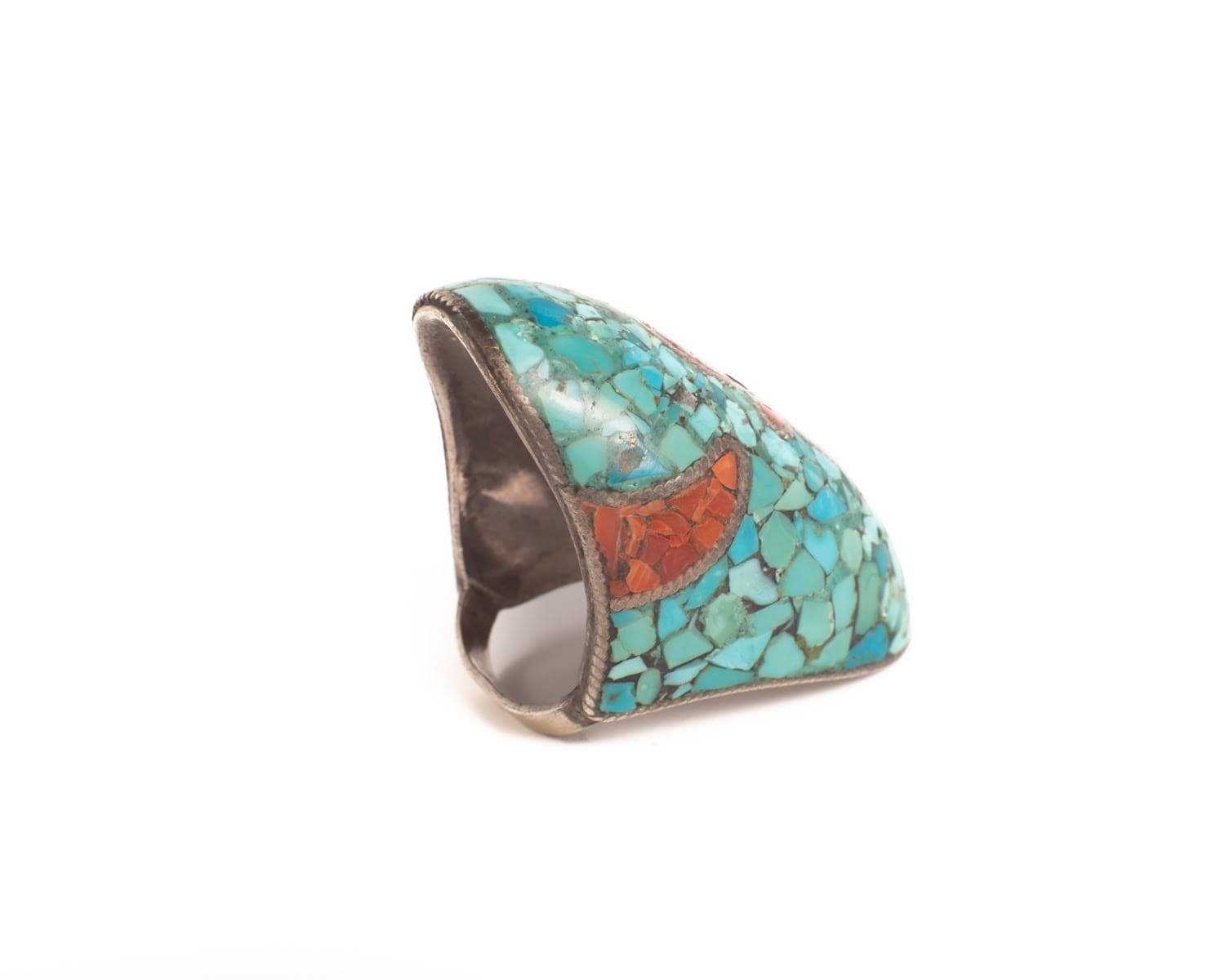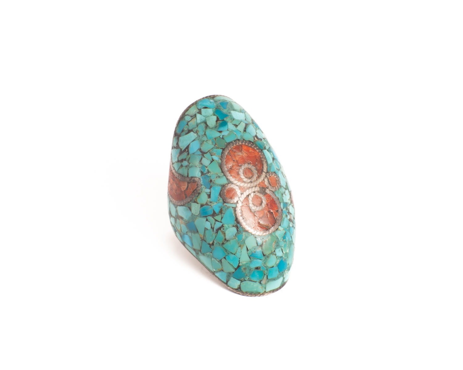 Pierścionek z turkusem i koralem