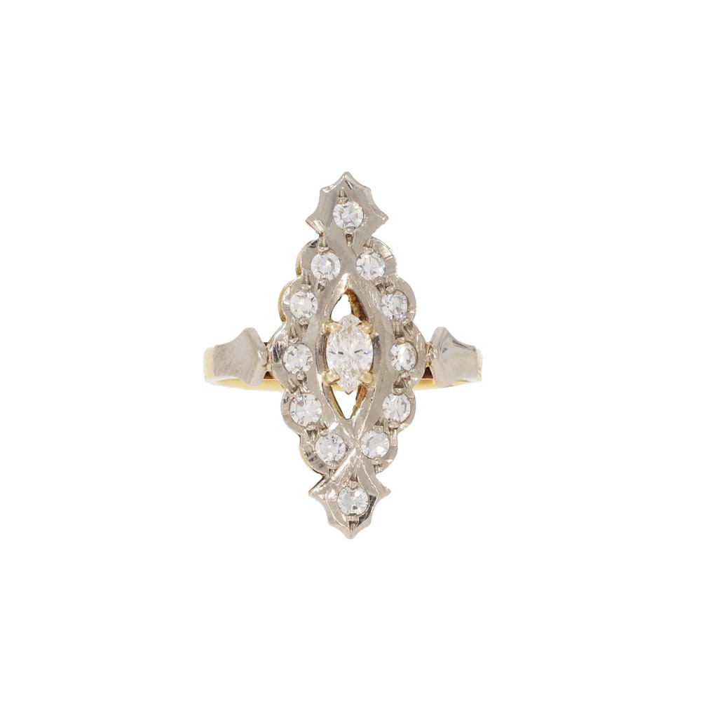 - 1 markiza i 12 okrągłych diamentów, łącznie ok. 0,55 ct
