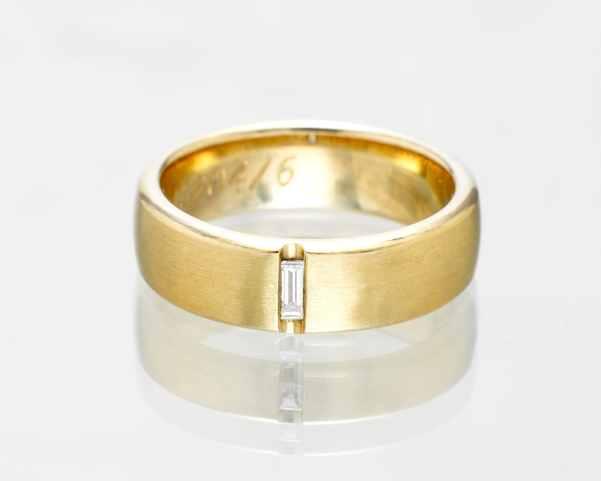 Pierścionek w formie obrączki z żółtego złota z diamentem.
