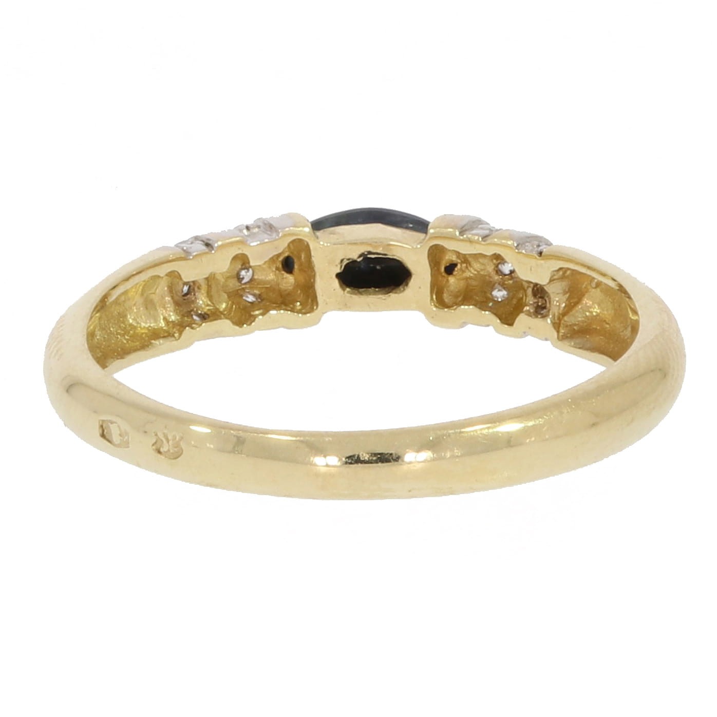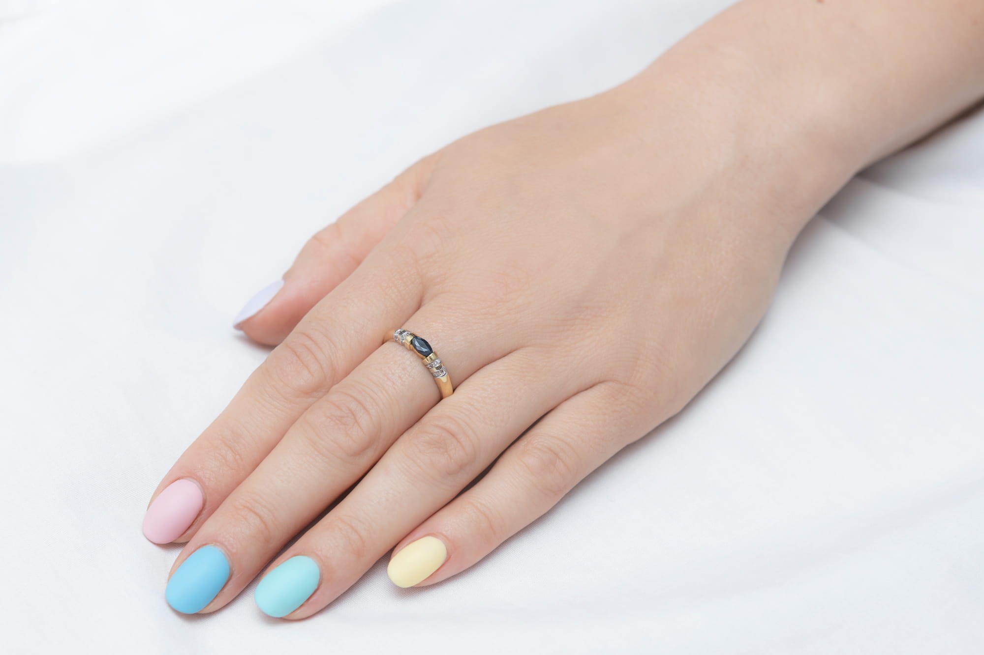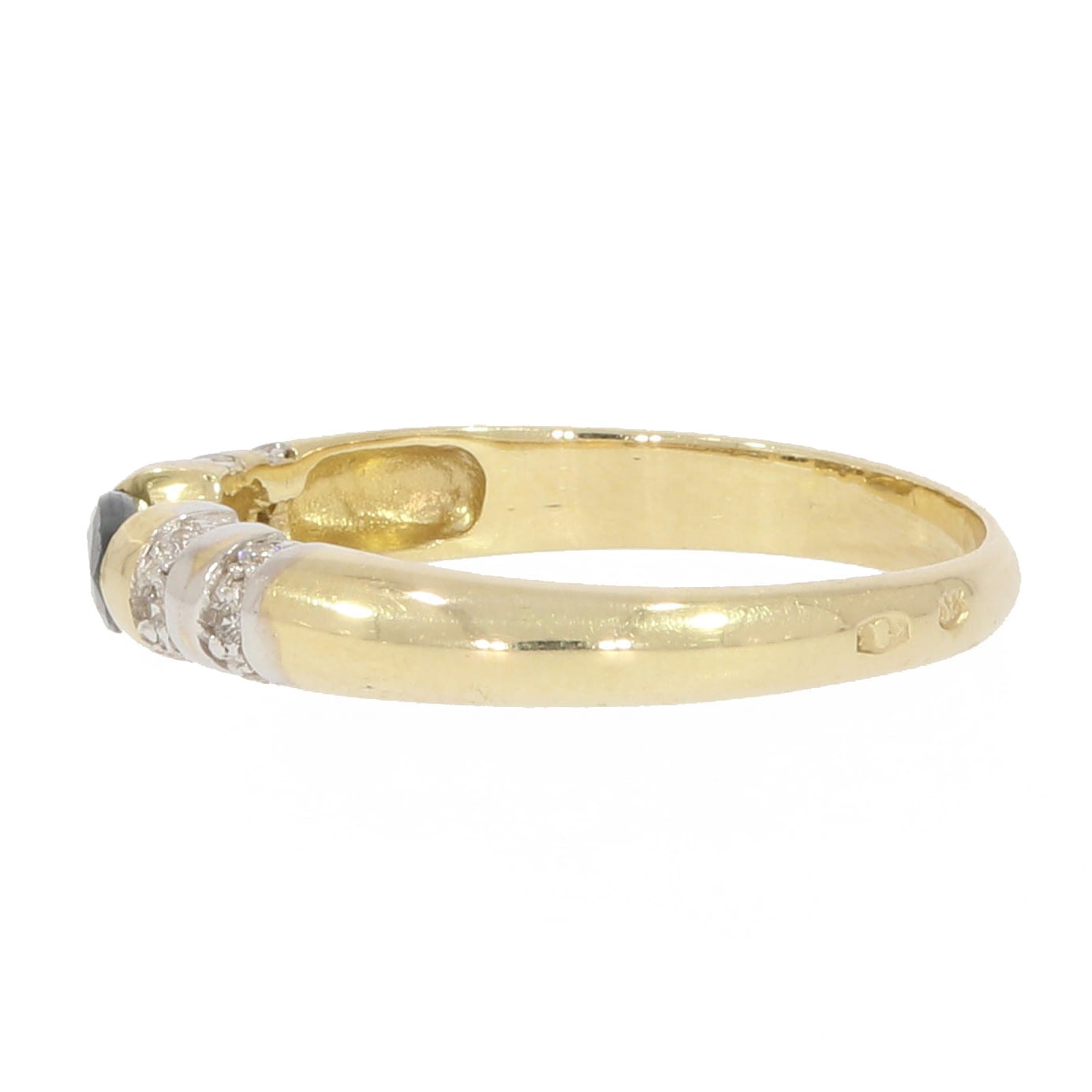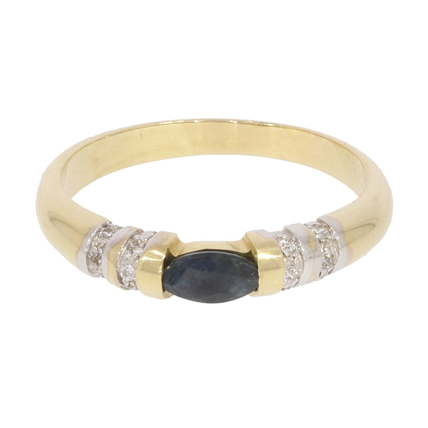 Pierścionek z żółtego złota z szafirem i cyrkoniami