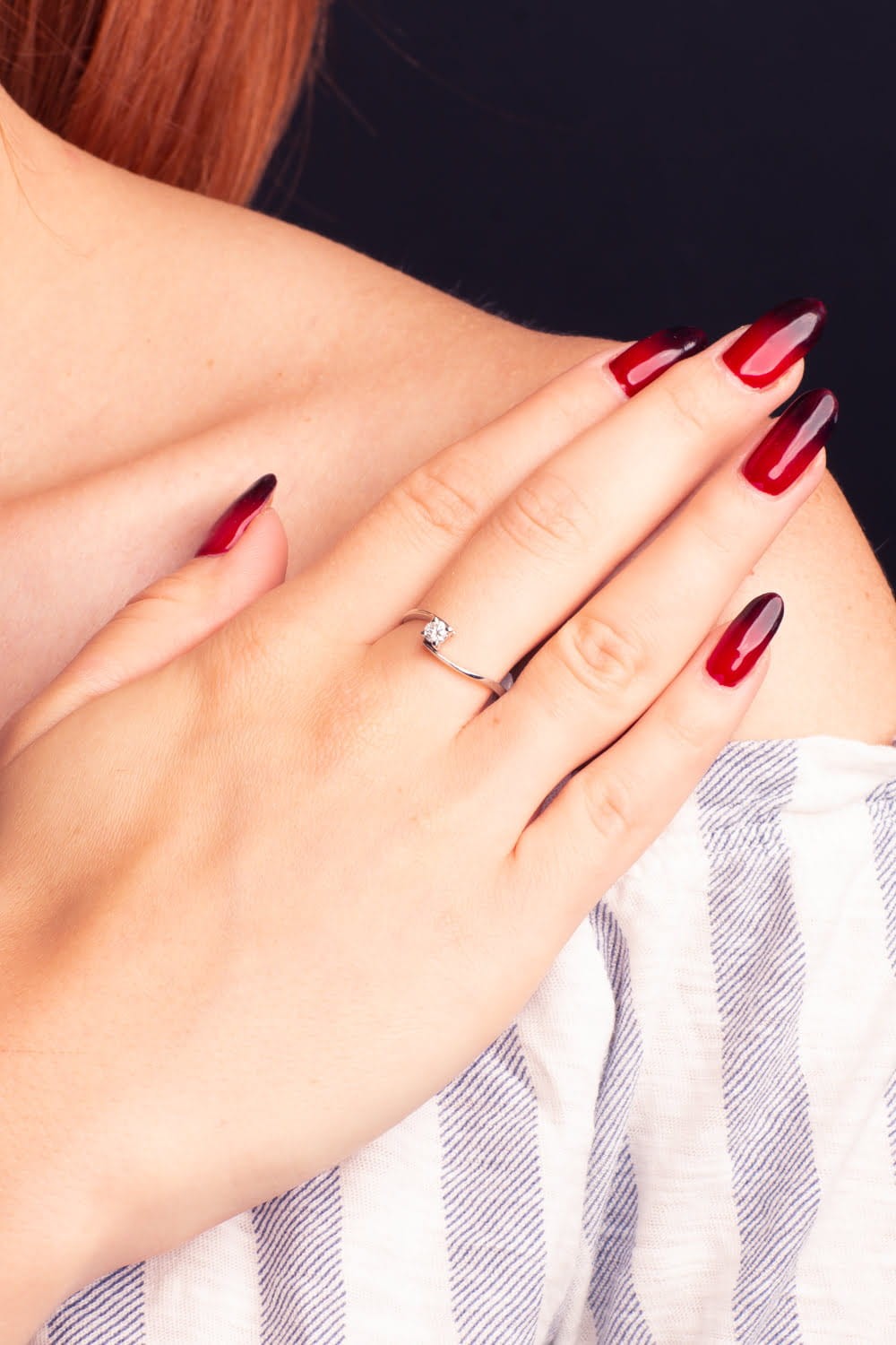 Uroczy pierścionek zaręczynowy w białym złocie i z centralnym diamentem. Wykonany w drugiej próbie złota.