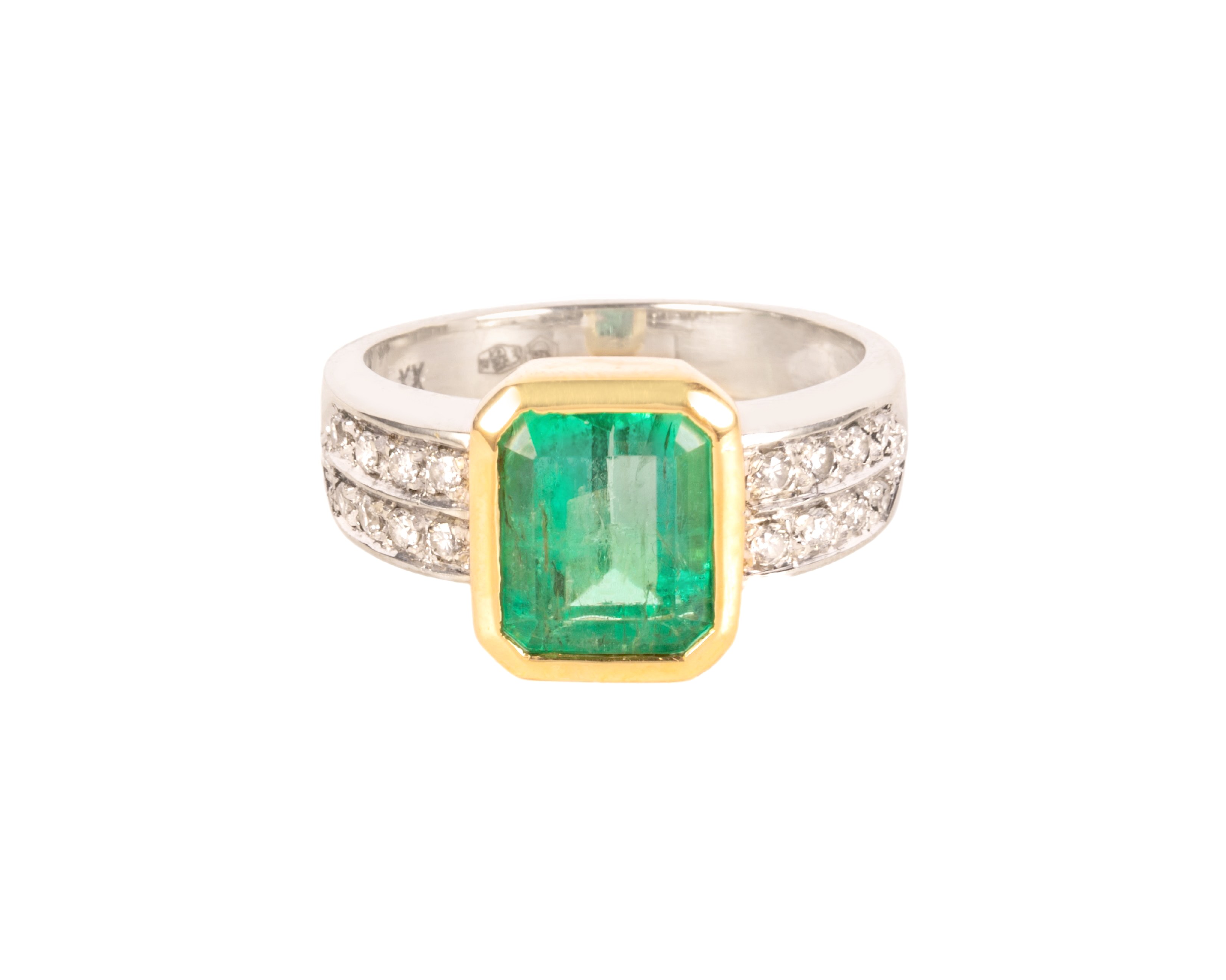 Pierścionek ze szmaragdem ok. 2,5 ct i diamentami ok. 0,20 ct