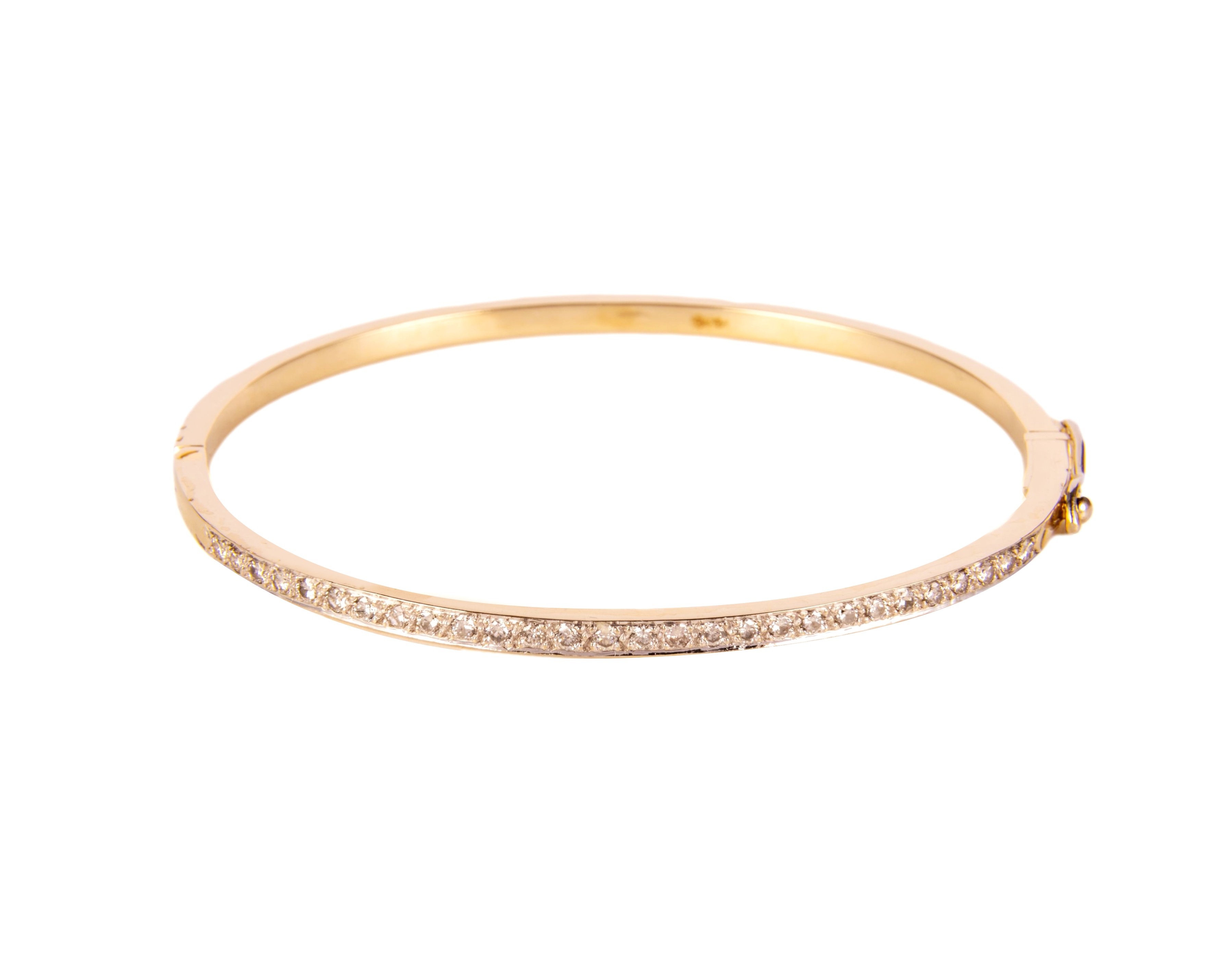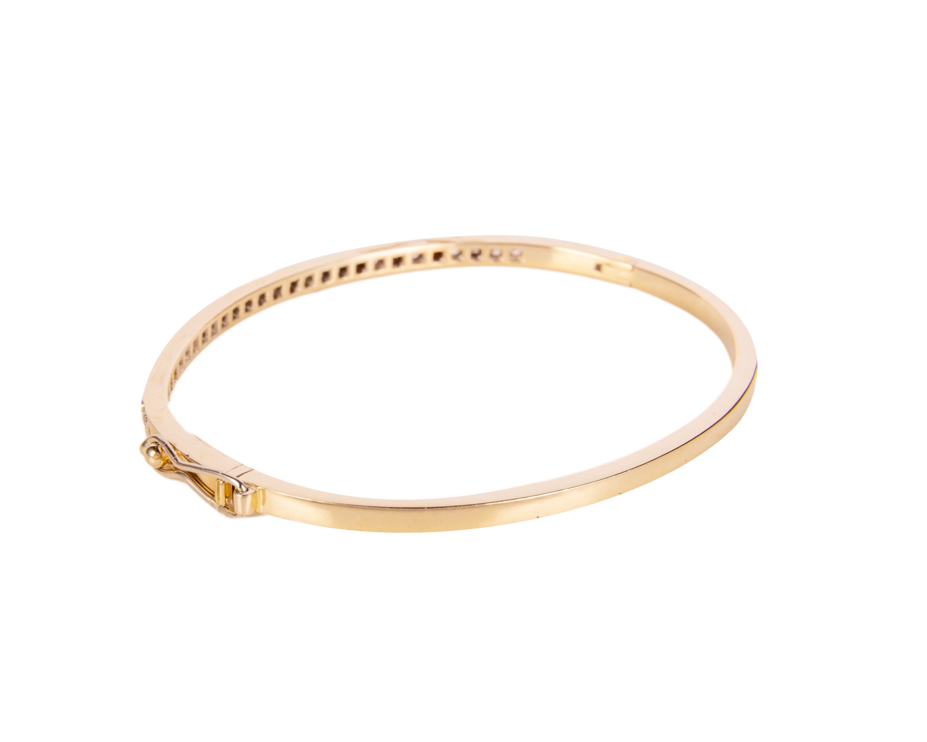 Sztywna bransoleta, wykonana z żółtego złota próby 750, wysadzana na swojej górnej połowie 28 diamentami o łącznej masie ok. 0,85 karata, czystości VS-Si oraz barwie w przedziale H-I. Wewnętrzne średnice bransolety mają 6 i 5 cm. Bransoleta ma klasyczne zapięcie na szufladkę z ósemką zabezpieczającą.