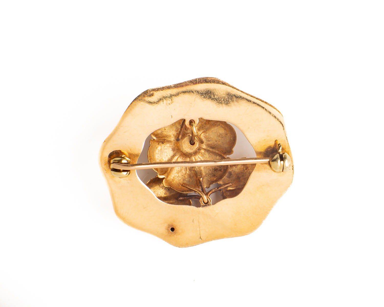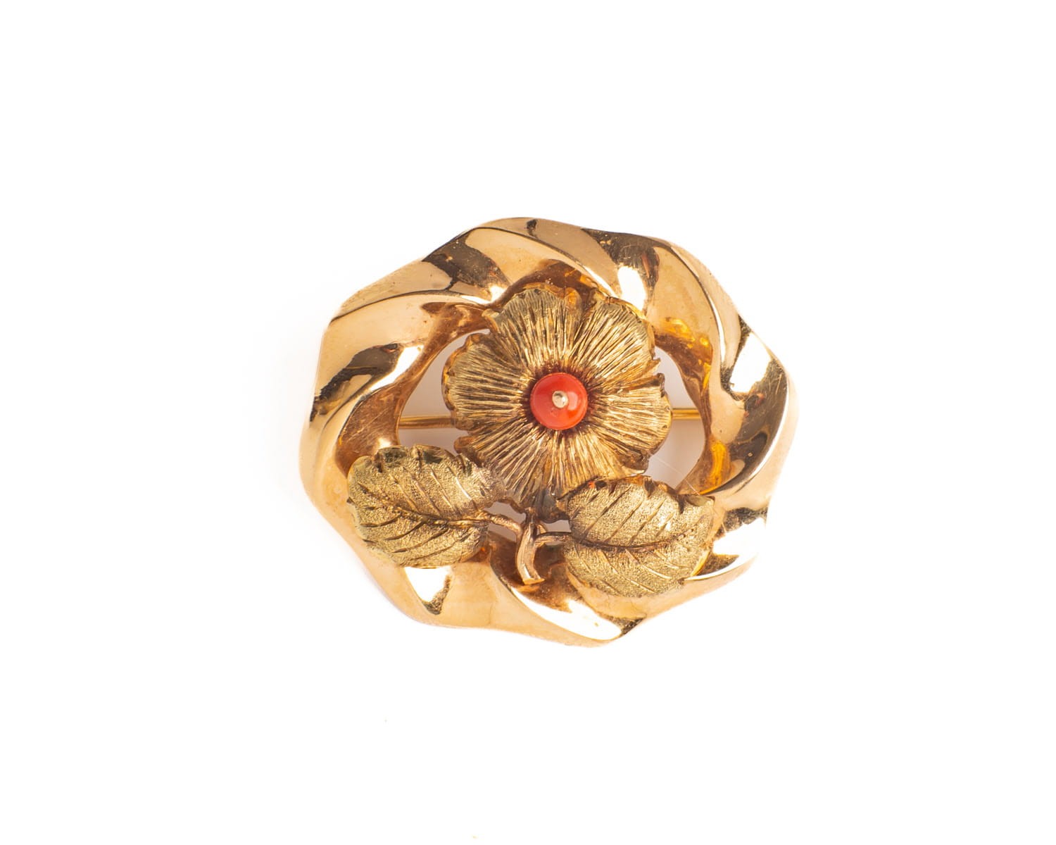 Złota broszka z koralem