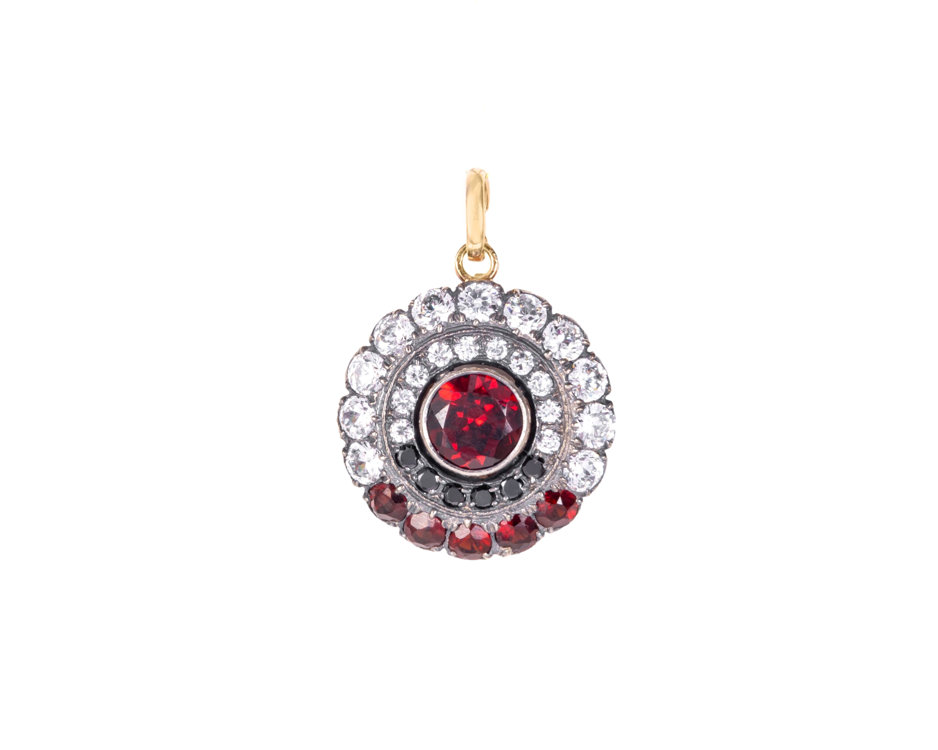 Zawieszka wykonana ze złota próby 3, tj. 585, o wielkości ok. 2 cm, wysadzana kolorowymi cyrkoniami.