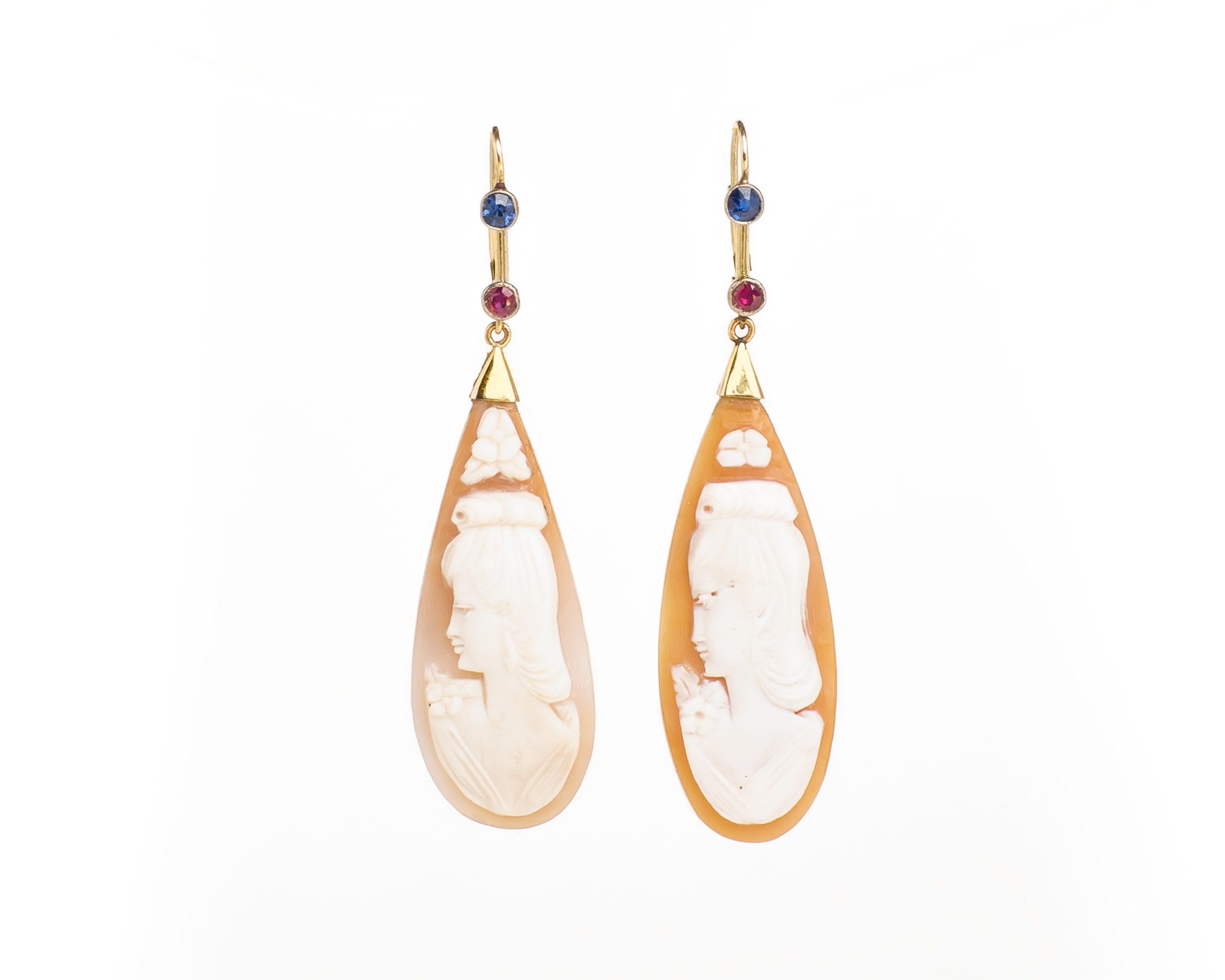 Kolczyki kamea z dodatkiem kamieni naturalnych. Kolczyki posiadają świadectwo badania. Idealne kolczyki dla wielbicieli kamieni szlachetnych.