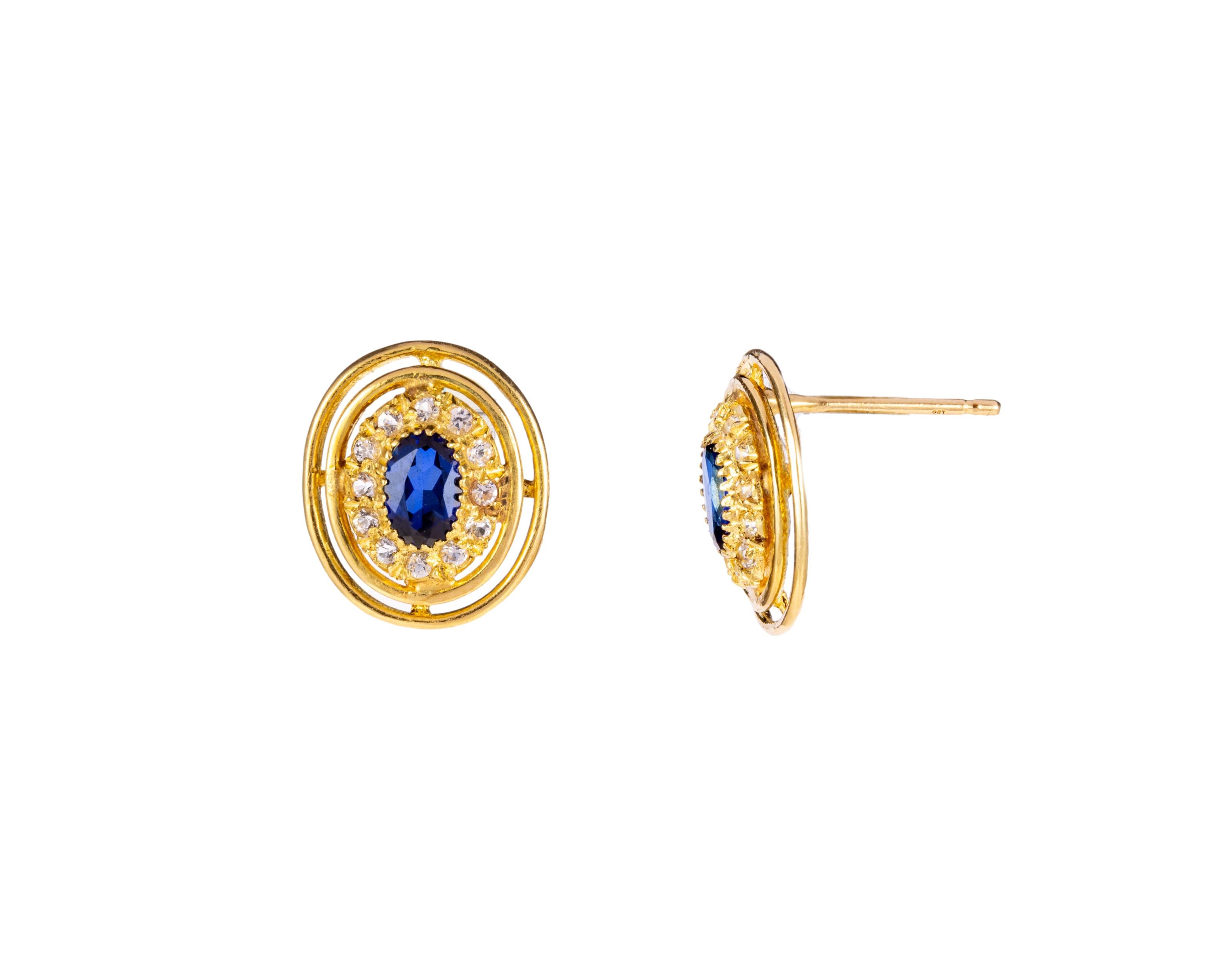 Złote kolczyki sztyfty z szafirami i cyrkoniami