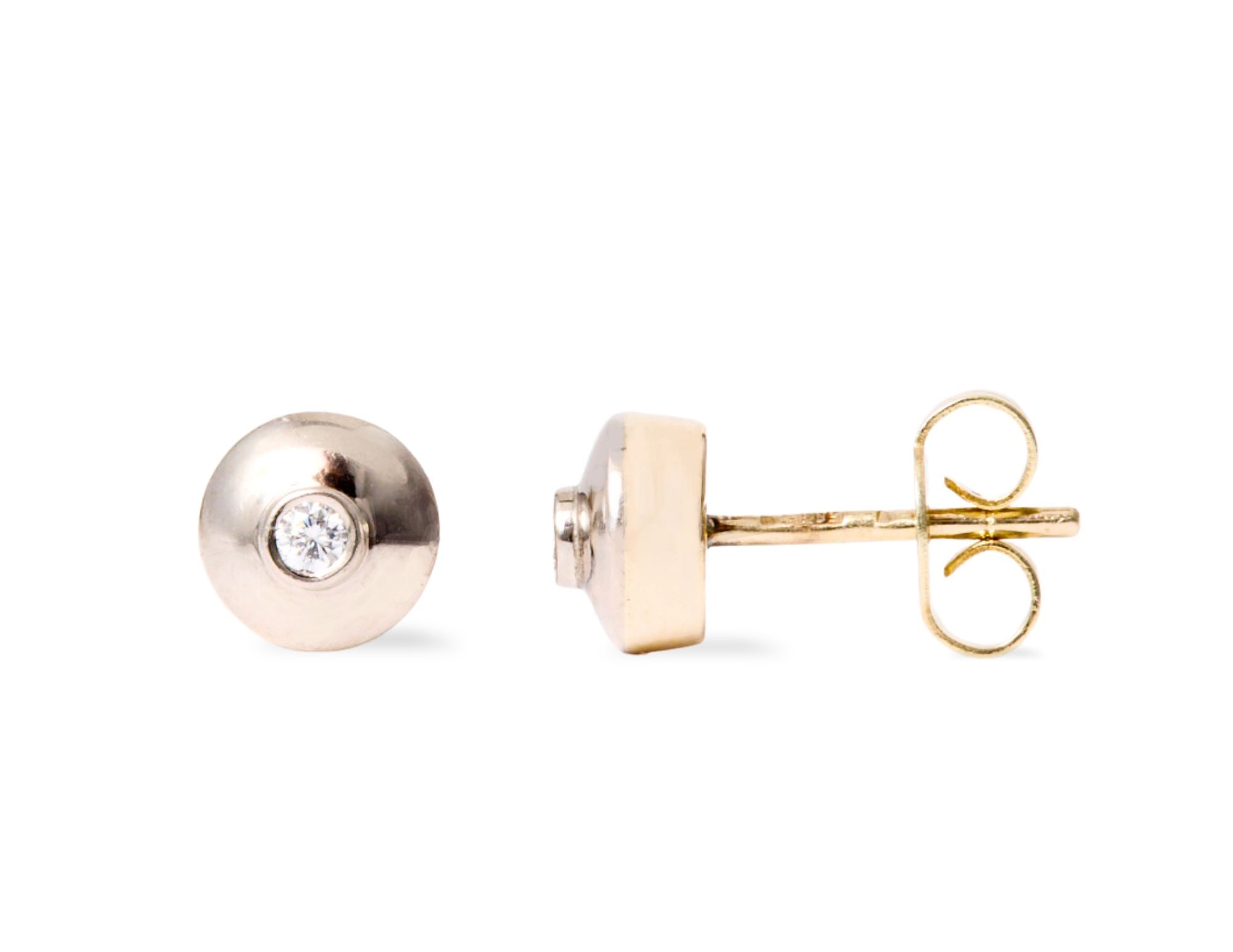 Złote kolczyki z diamentami, na sztyfcie