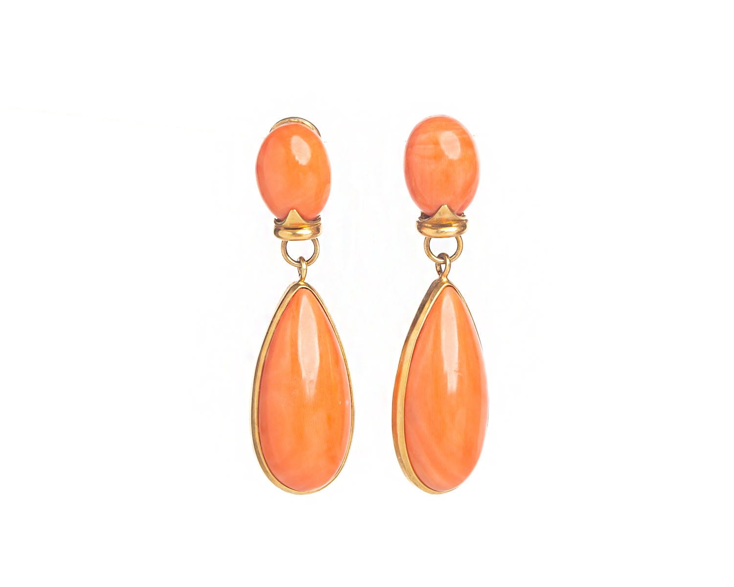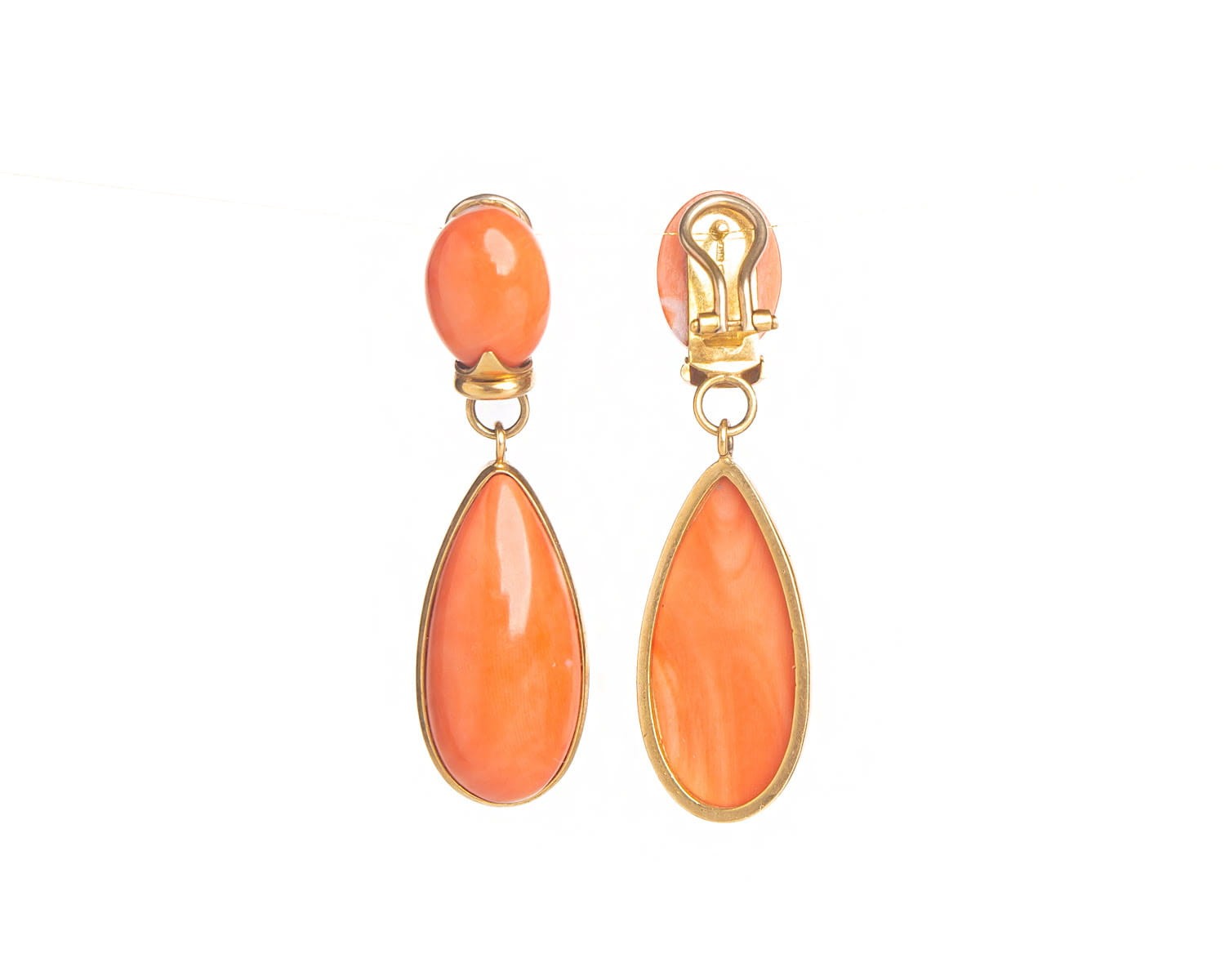 Przepiękne kolczyki z podwójnymi koralami o głębokiej, pomarańczowej barwie.