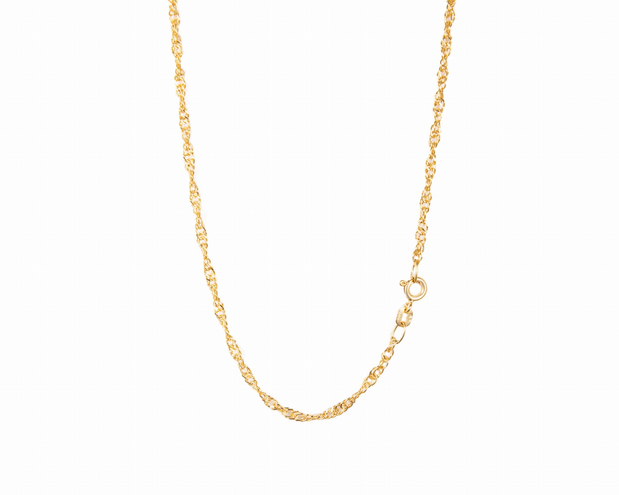 Łańcuszek w splocie typu singapur, o długości ok. 45 cm. Całość wykonana w żółtym złocie, próby 3, tj. 585.