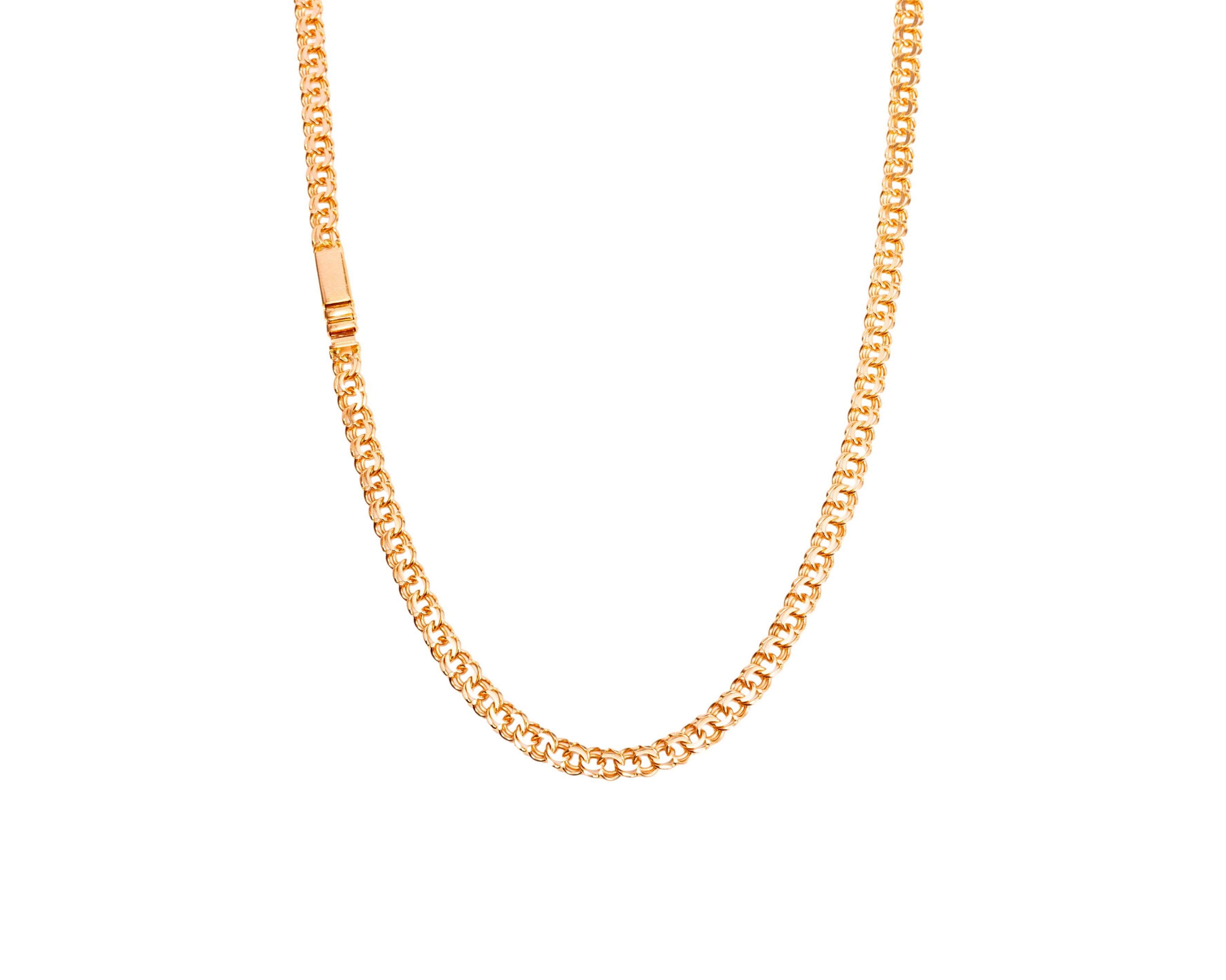Złoty łańcuszek w splocie galibardka o długości 50 cm. Łańcuszek wykonano ze złota próby 583, zapięcie to klasyczna szufladka.