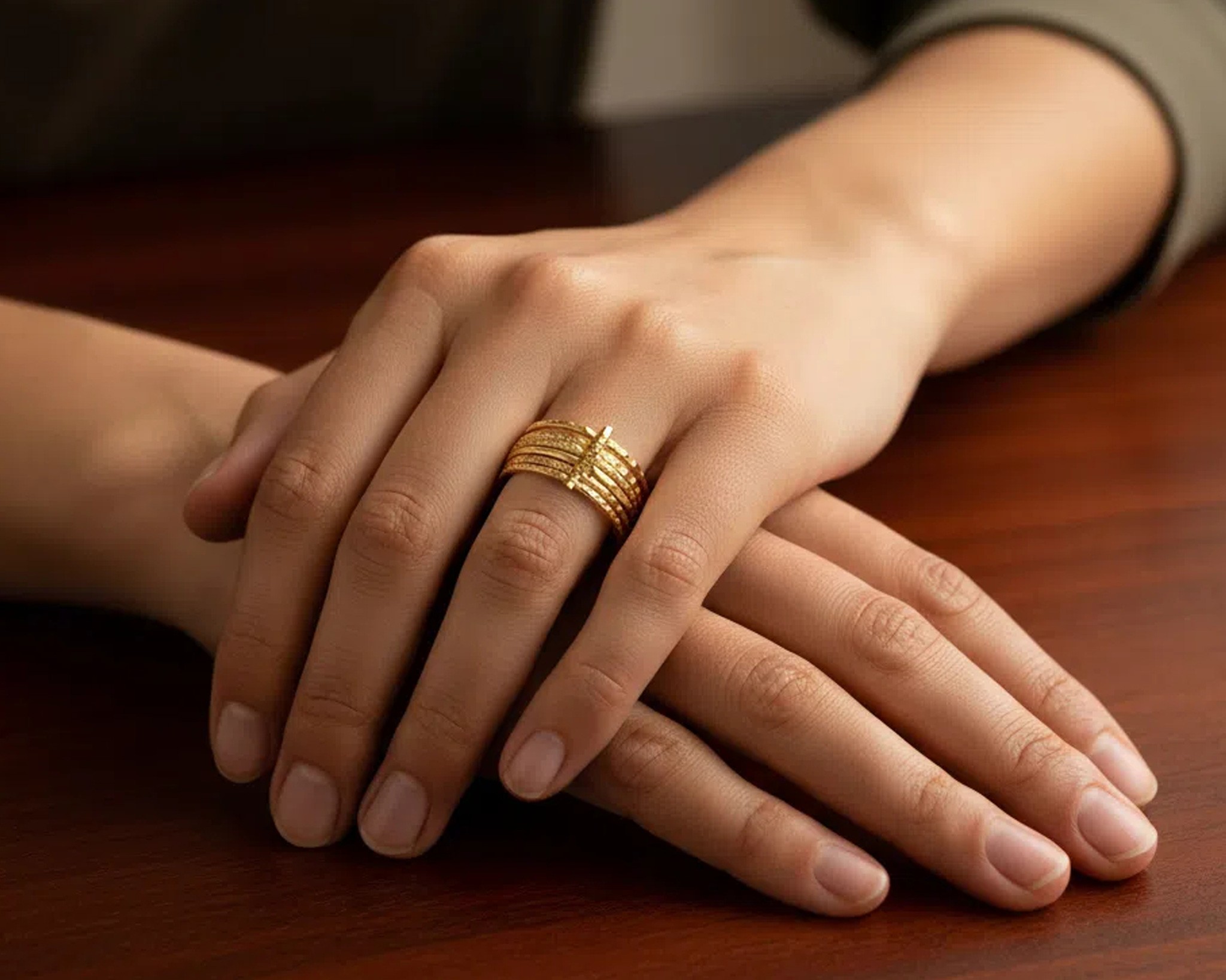 Złoty pierścionek, wiele obrączek, na wzór Pierścionka Siedmiu Dni