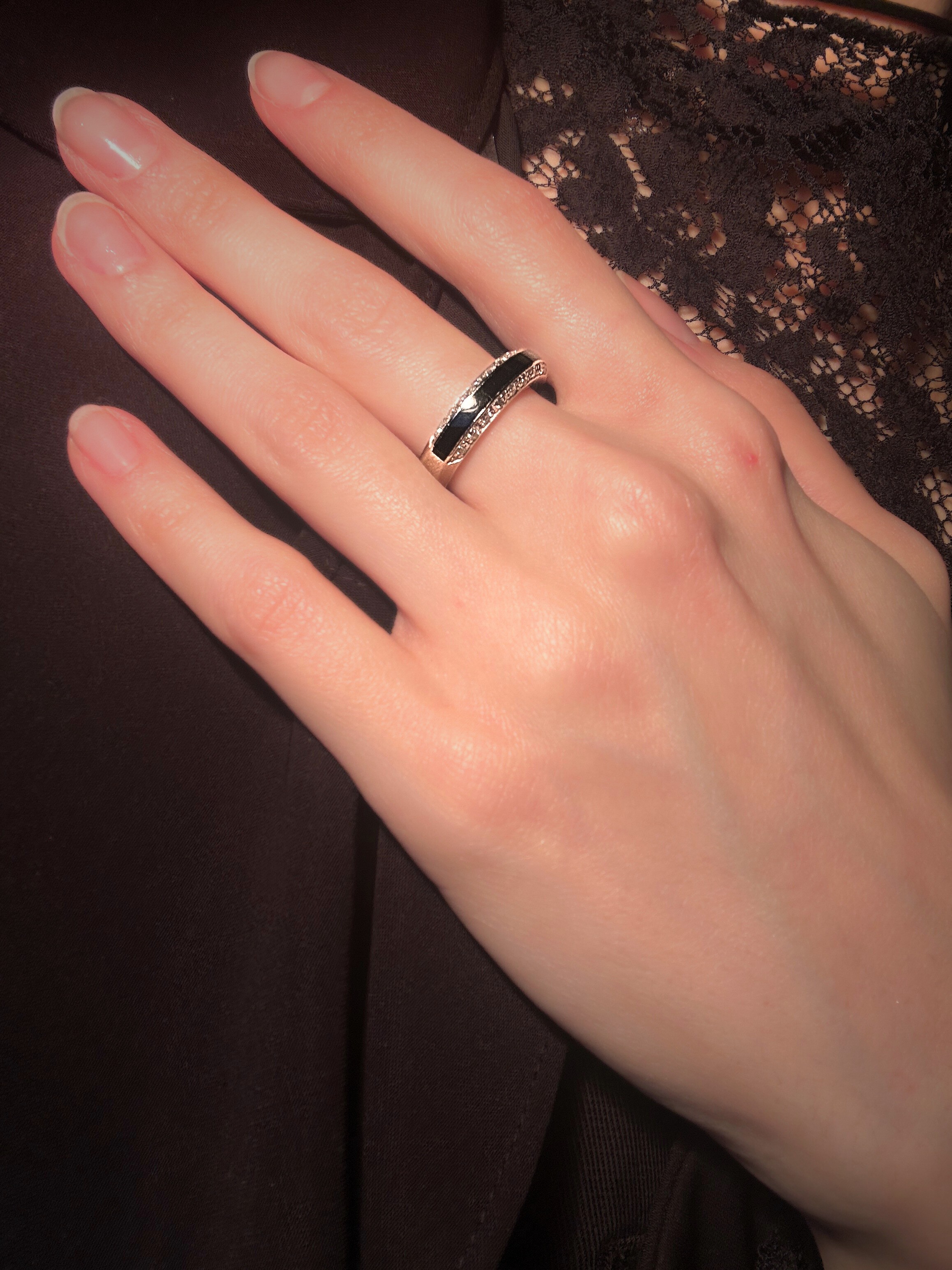 Złoty pierścionek z czarną emalią i diamentami – subtelny luksus każdego dnia
