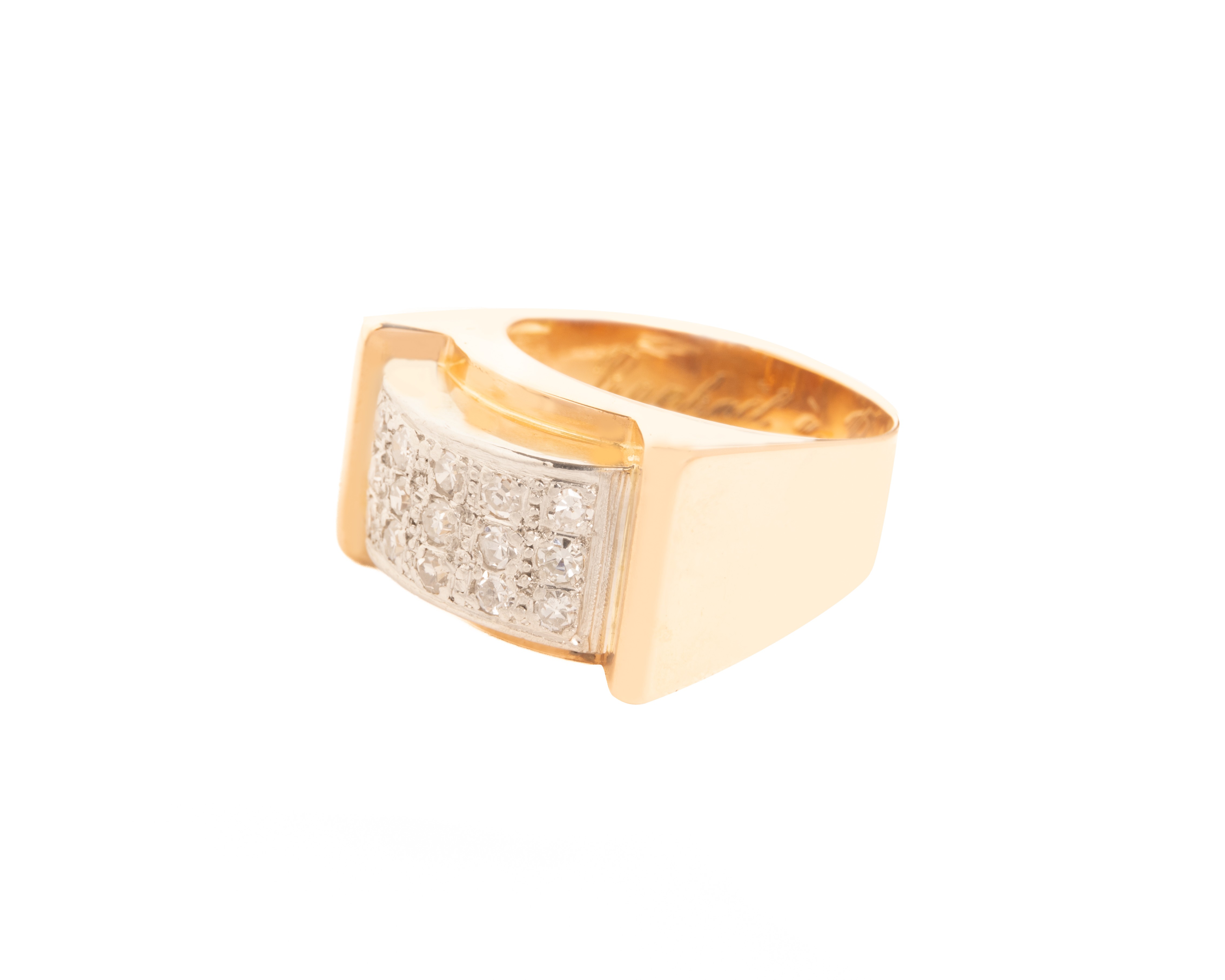 Złoty pierścionek vintage z 15 diamentami, geometryczne formy