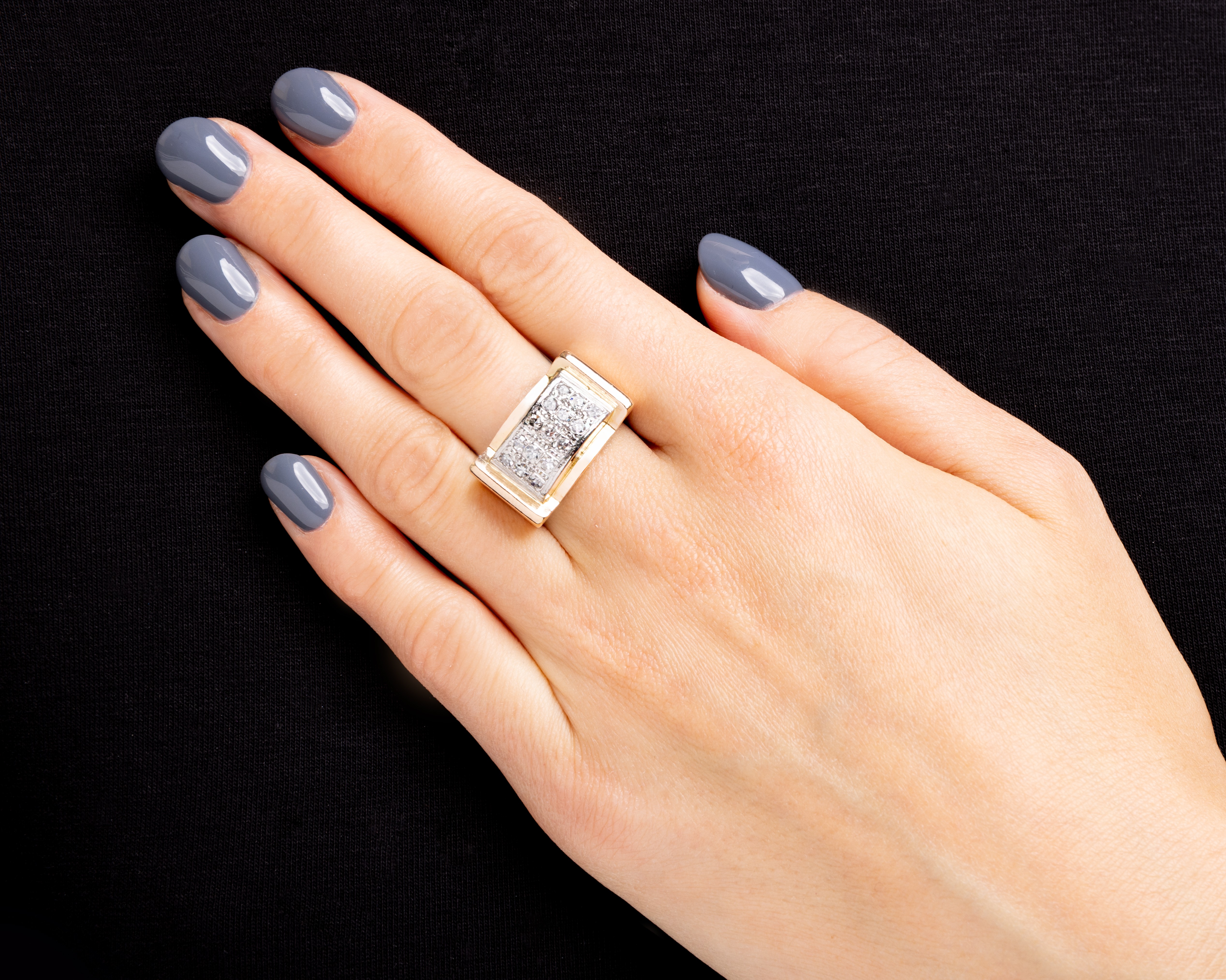 Pierścionek z 15 diamentami – geometryczna elegancja ze złota i platyny
