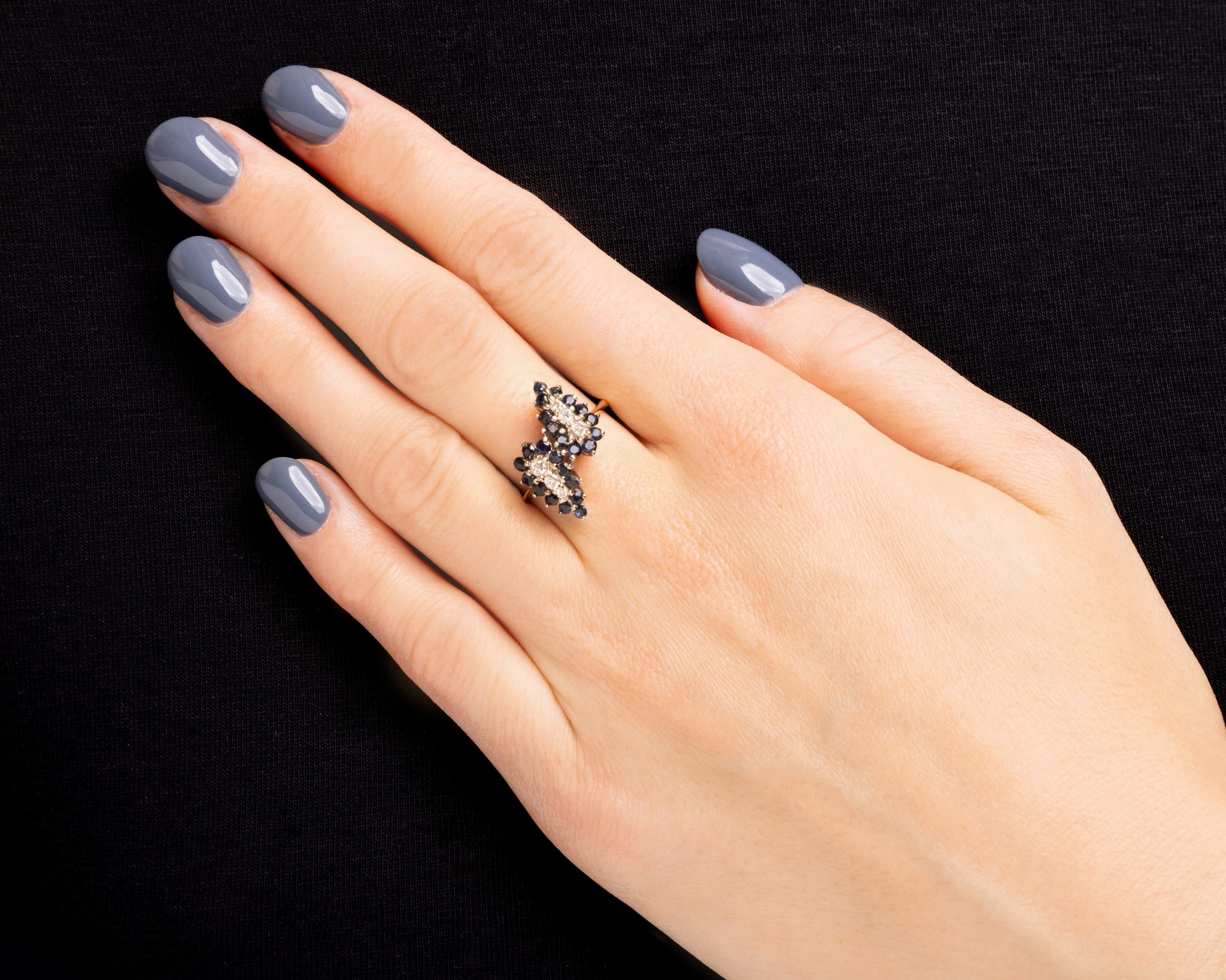 Złoty pierścionek z brylantami ok. 0,16 ct i szafirami ok. 1 ct