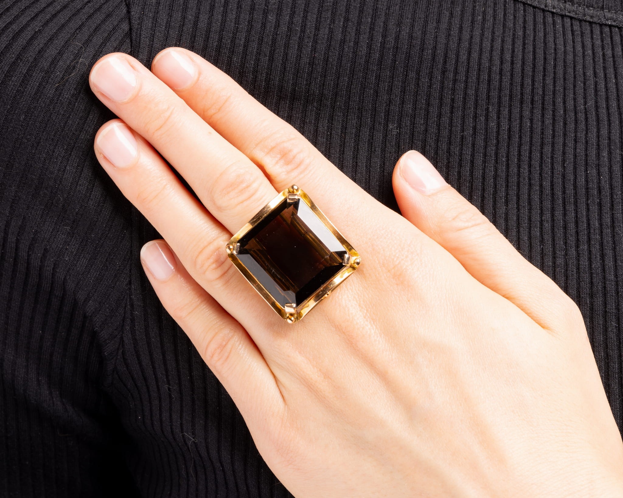 Złoty pierścionek z kwarcem dymnym ok. 29 ct