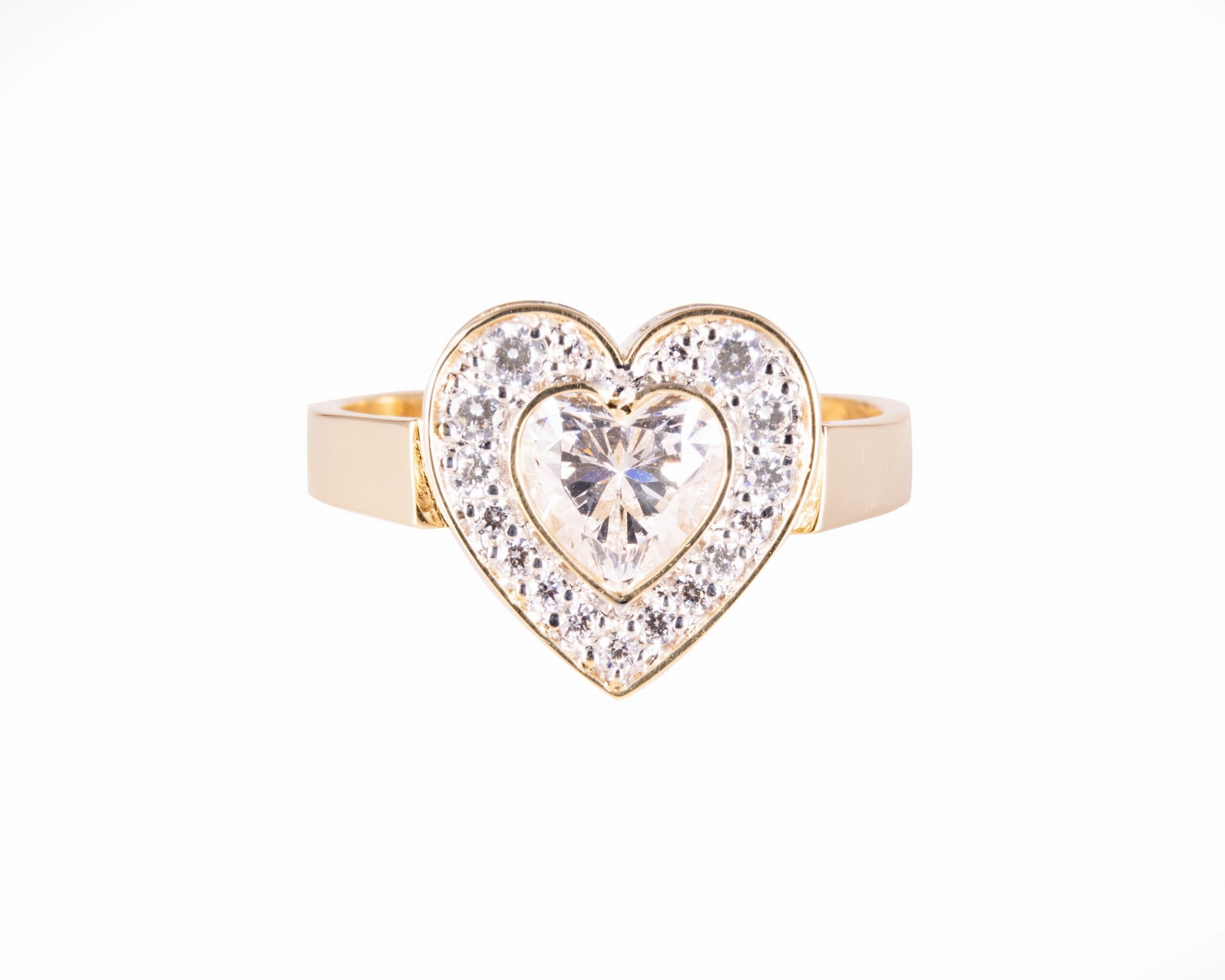 Złoty pierścionek z motywem serca, cyrkonie, design mikicki
