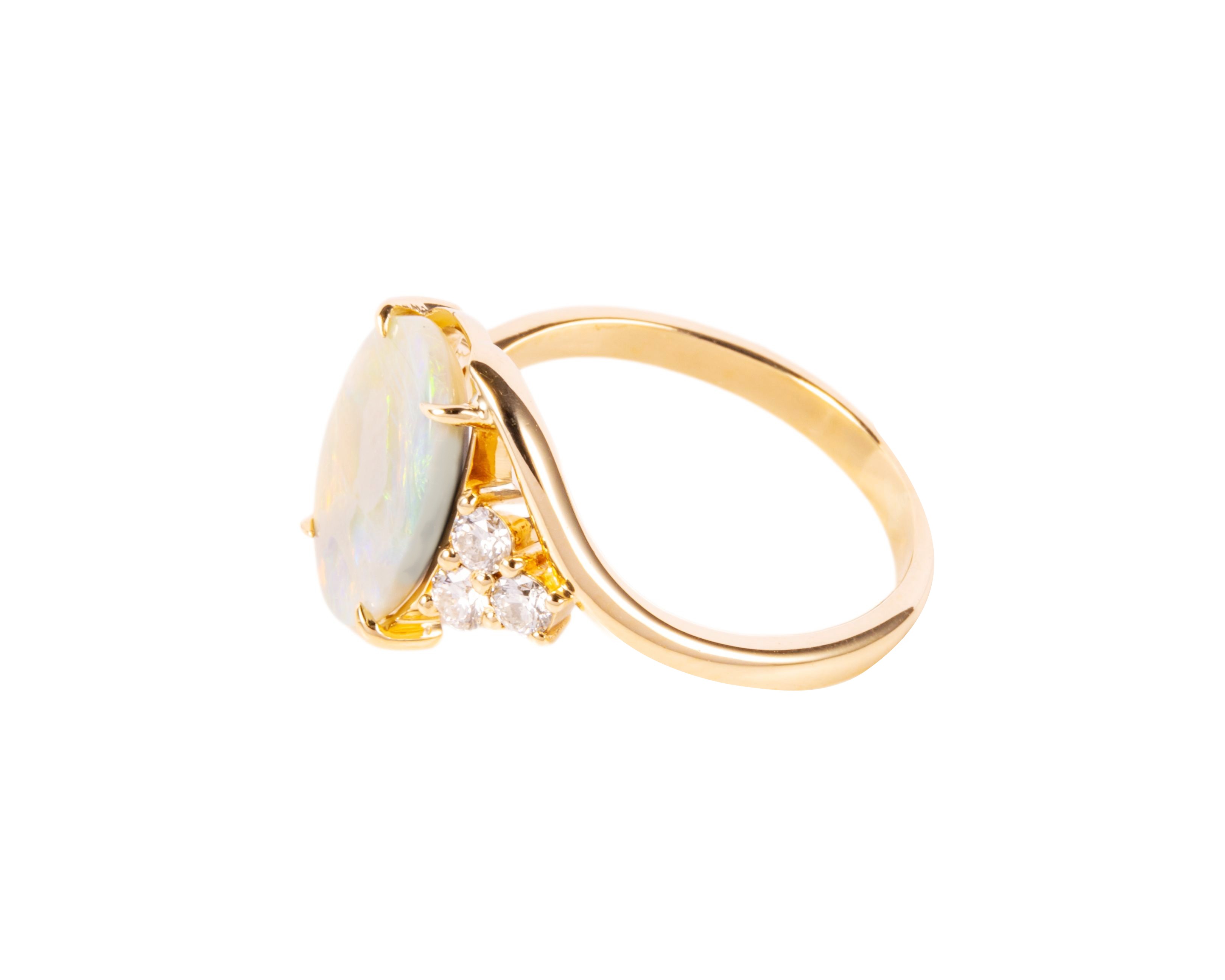 Złoty pierścionek z opalem australijskim 1,55 ct i diamentami