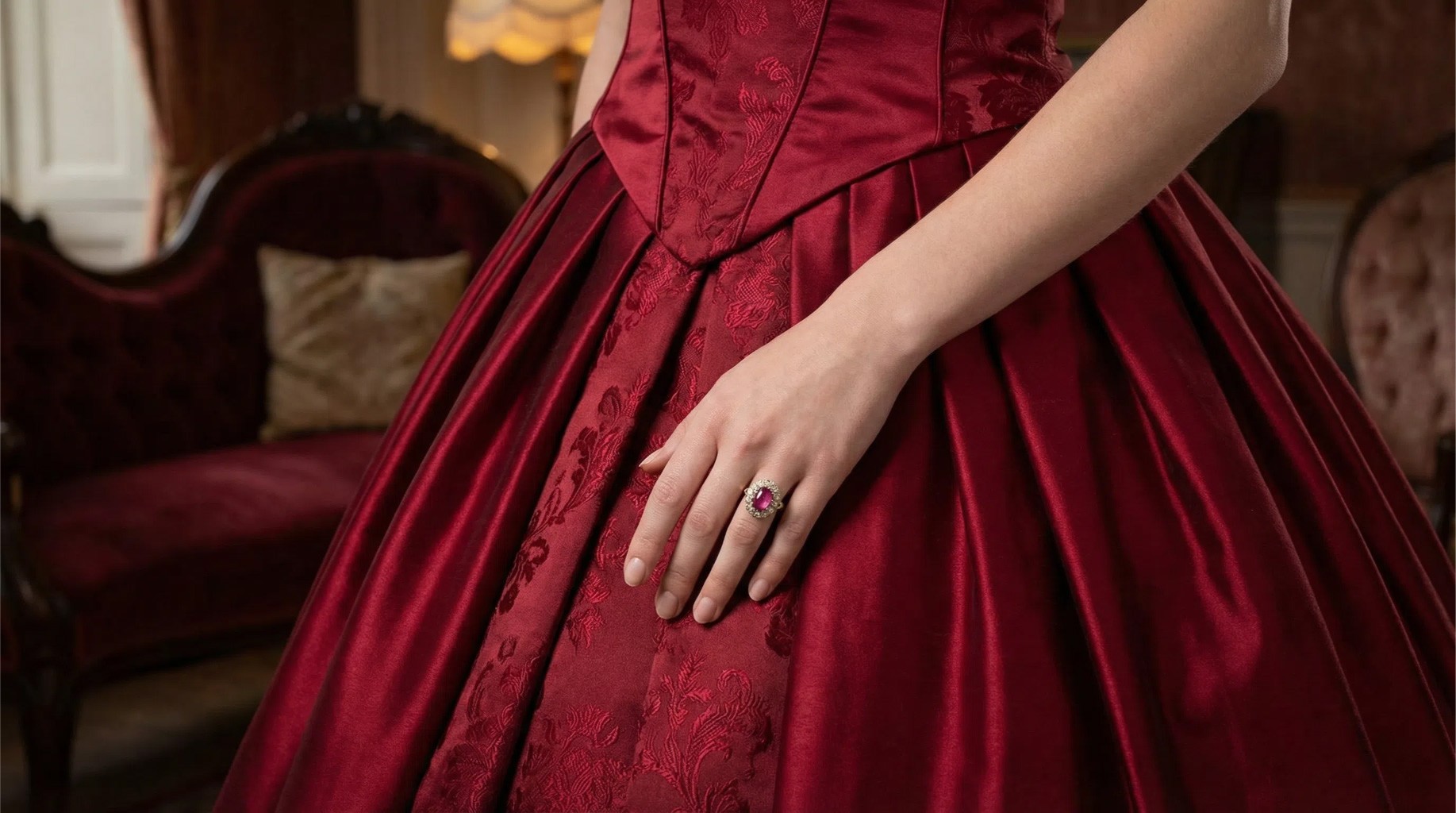 Wyjątkowy pierścionek, który zachwyca królewskim, intensywnie czerwonym blaskiem naturalnego rubinu o wadze 2,30 karata w szlifie kaboszon, otoczonym diamentową karmazycją. To biżuteria dla kobiet ceniących luksus, unikatowe wykonanie i szlachetne kamienie najwyższej jakości. Pierścionek łączy w sobie historyczny styl z wykwintnym rzemiosłem jubilerskim, tworząc kompozycję pełną blasku i wyrafinowania.