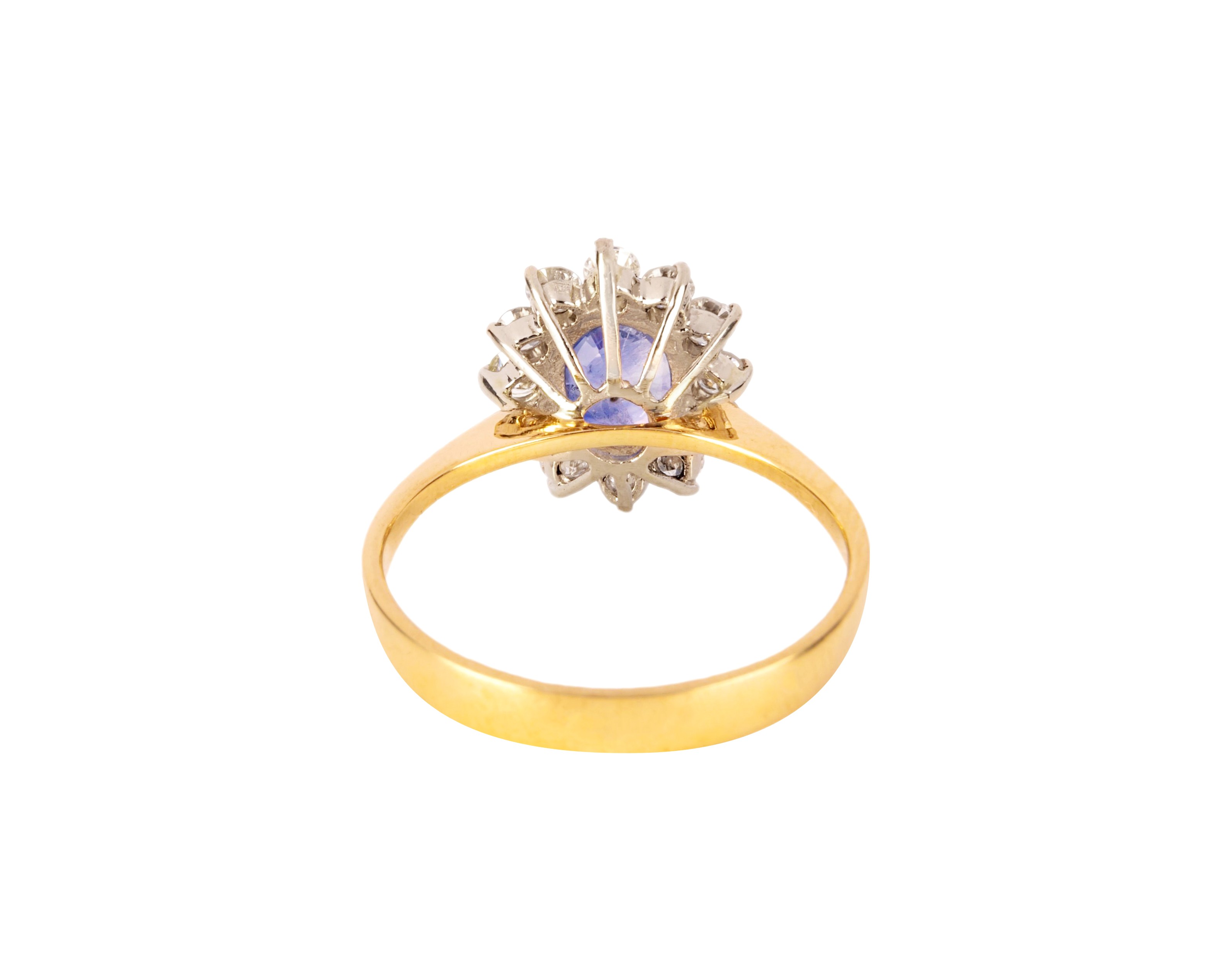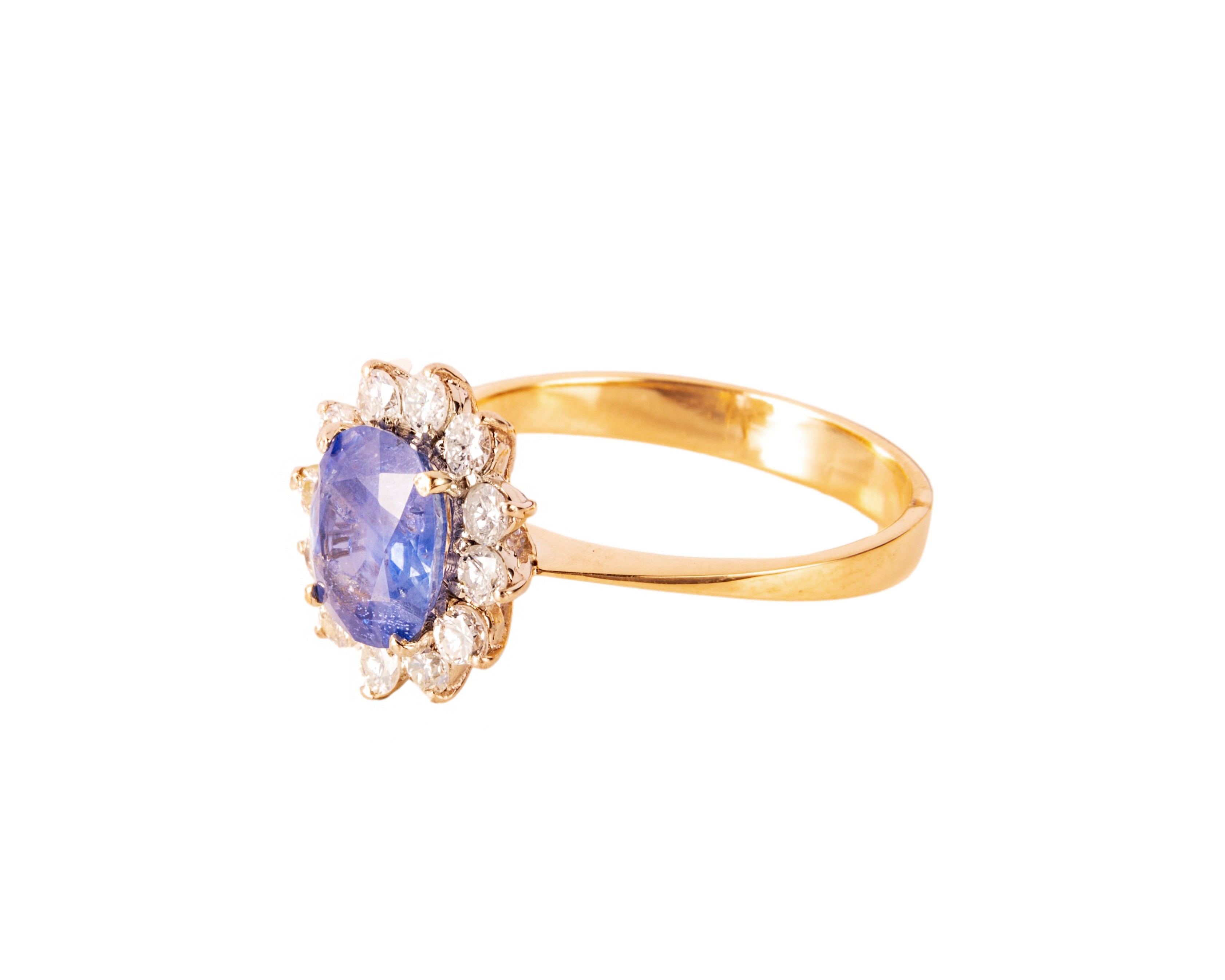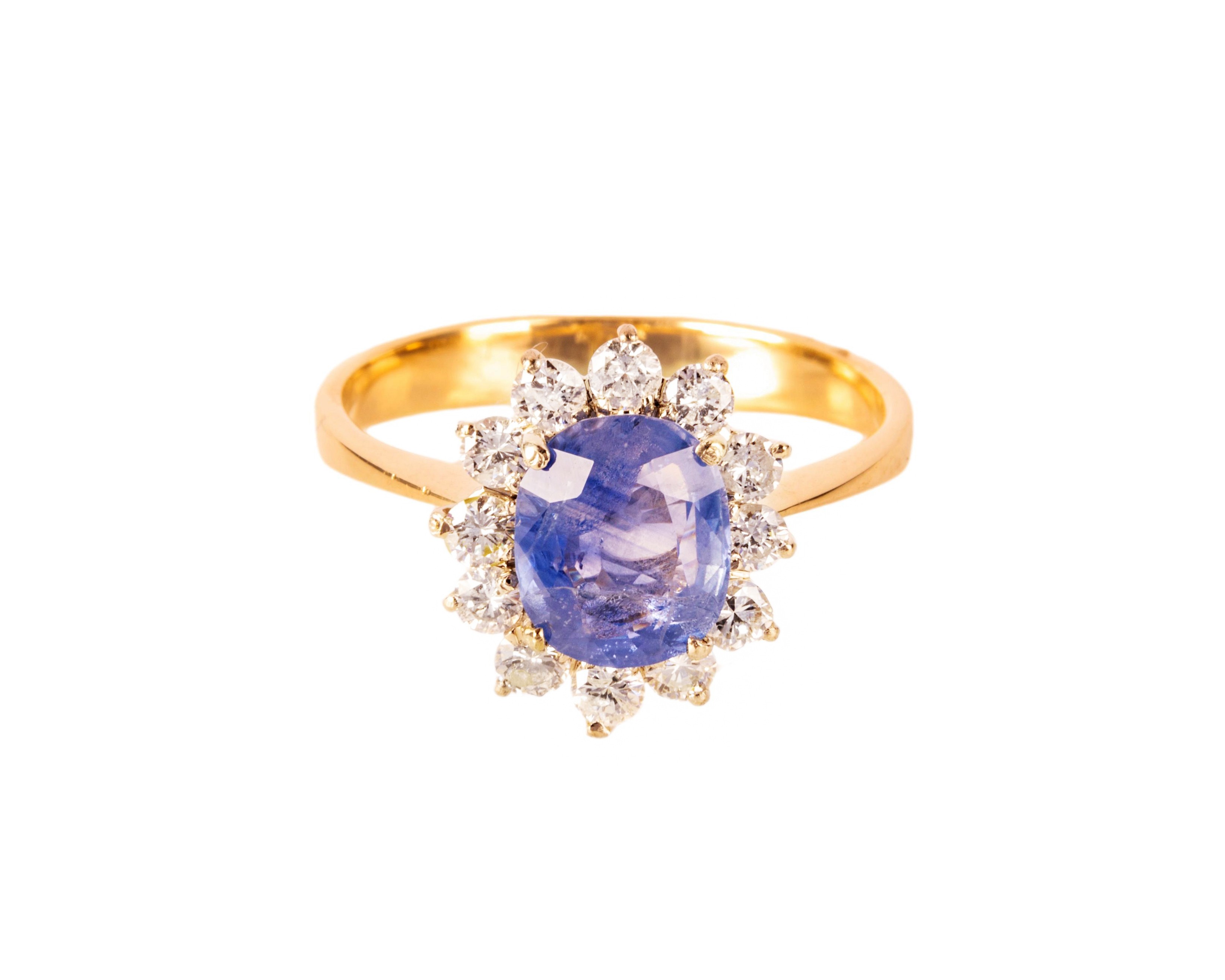 Złoty pierścionek z szafirem ok. 2 karatów i 12 diamentów