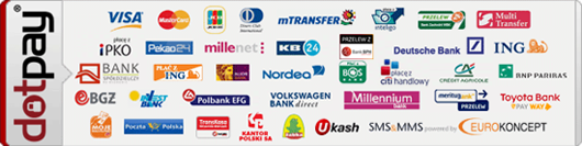 4.4 Оплата кредитной картой либо с помощью электронного перевода осуществляется посредничеством Центра расчета платежей Dotpay - Дотпей.